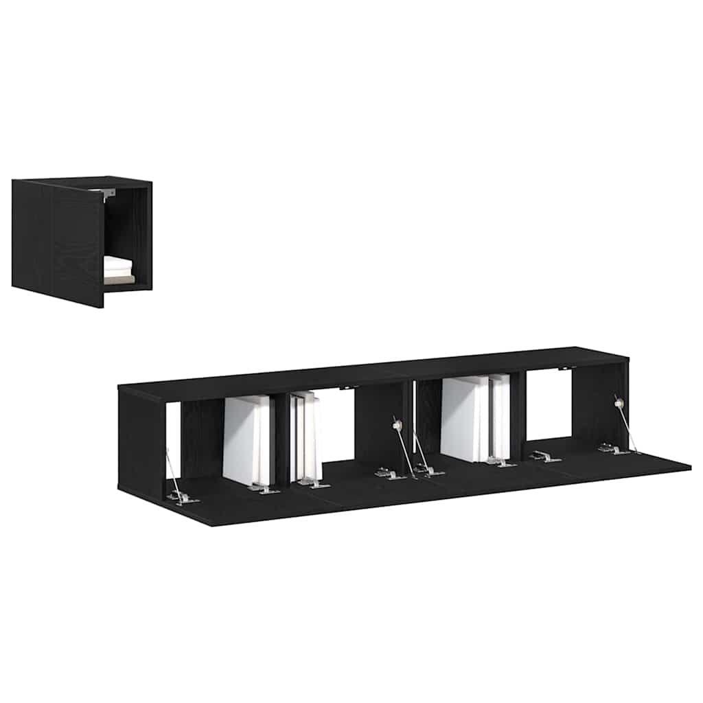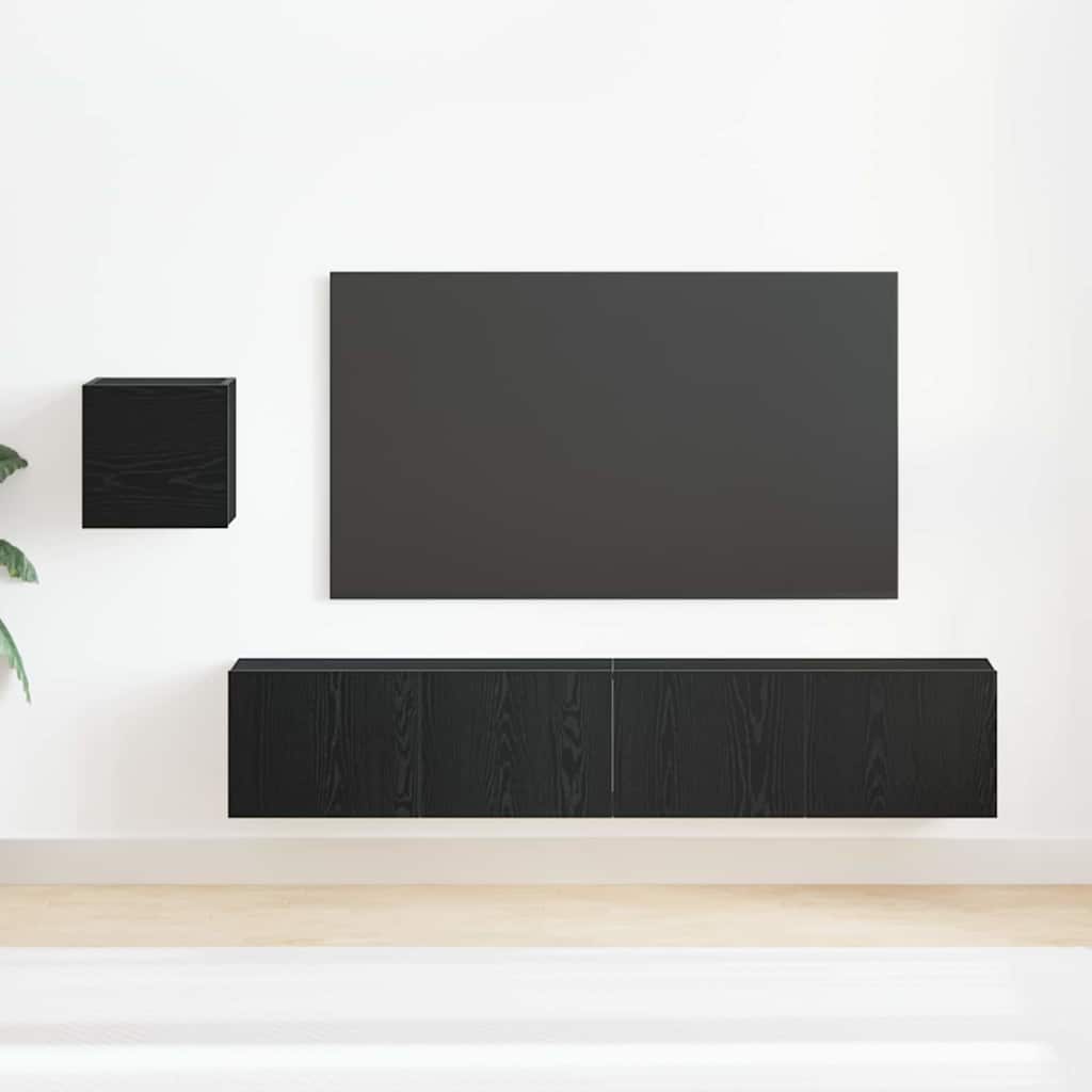 Dieses wandmontierte TV-Schrank Set kombiniert Stil und Funktionalität und macht jedes Wohnzimmer oder Heimkino mit seinem eleganten Schwarz-Eichen-Finish großartig. Mit drei schwebenden Regalen und einem TV-Stand wird eine ordentlich moderne Präsentation geschaffen, die dir gleichzeitig viel Stauraum für Medien und Deko bietet. ?Elegantes Aussehen?Das matte Schwarz-Eichen-Finish bringt dein Zuhause auf das nächste Level und verleiht ihm einen zeitgemäßen Look. ?Guter Stauraum?Das Set kommt mit drei schwebenden Regalen, ideal für DVDs, Spielkonsolen und Deko. ?Robuste Bauweise?Hergestellt aus hochwertigem Holzwerkstoff, der stabil und langlebig ist, um deine Unterhaltungsbedürfnisse zu erfüllen. ?Platzsparendes Design?Wandmontiert, um dir den Boden freizuhalten, perfekt für kleine Wohnungen oder minimalistische Setups. ?Einfache Montage?Enthält klare Anleitungen für eine schnelle Installation; Wandmontage-Befestigungen sind im Paket enthalten.