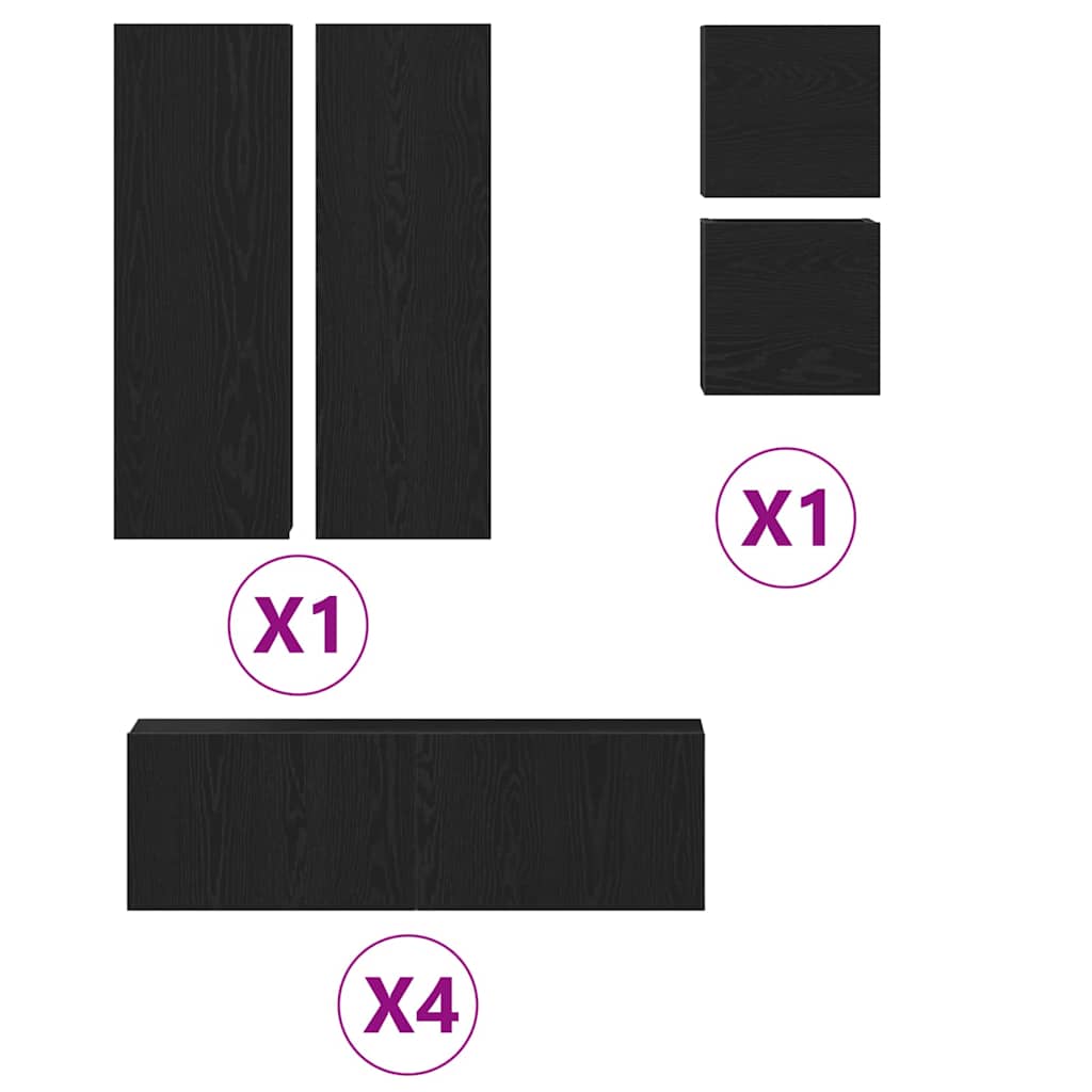 8-teiliges wandmontiertes TV-Schrankset in Schwarz Eiche aus Holzwerkstoff, wandmontierte TV-Schränke - 2 Stück Schwarz Eiche, 30,5x30x90 cm, aus Holzwerkstoff, wandmontierte TV-Schränke 2 Stück Schwarz Eiche 30,5x30x30 cm, schwarzer Eiche wandmontierter