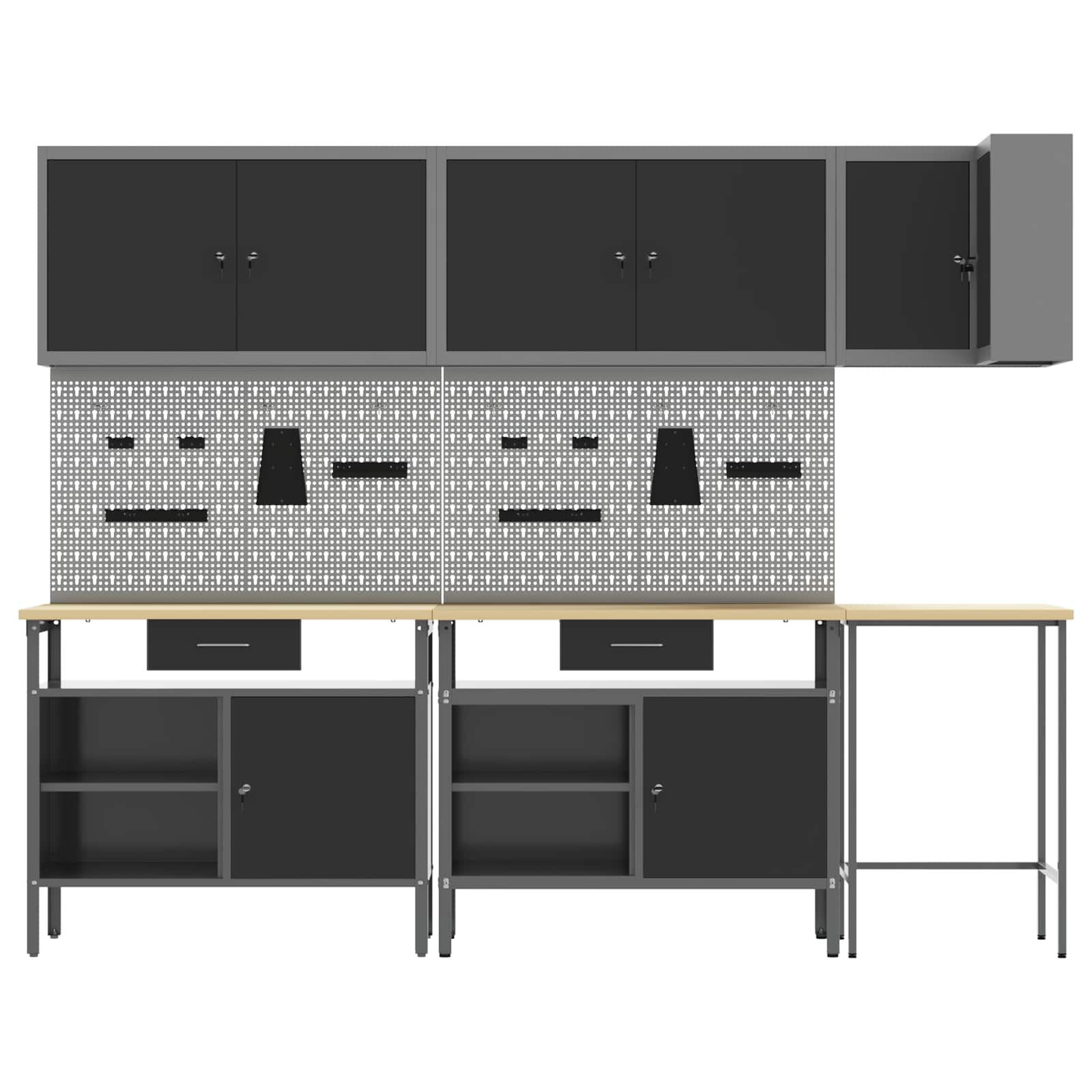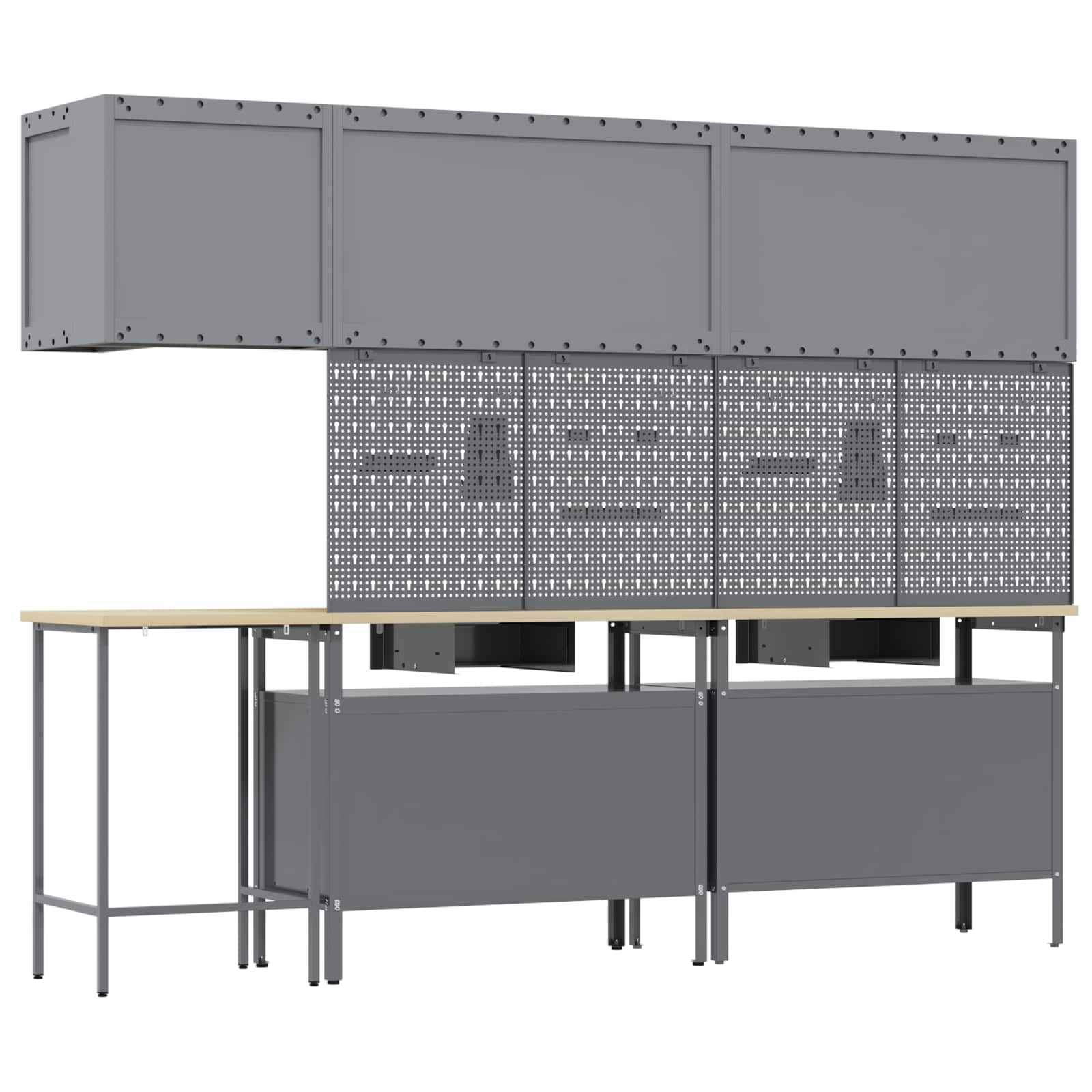 - Lieferumfang: 3x Tisch + 4x Lochblech + 3x Schrank