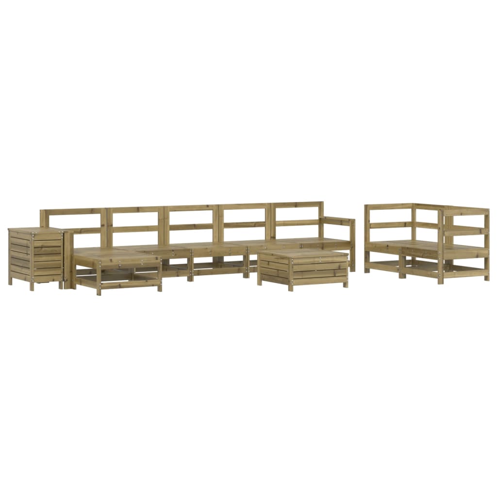 Dieses Garten-Lounge-Set aus Holz mit Latten-Design ist eine großartige Bereicherung für deinen Garten, deine Terrasse oder deinen Balkon, um eine gemütliche Zeit mit der Familie oder Freunden zu verbringen. Robustes und langlebiges Material: Massives Kiefernholz ist für seine Stärke und Haltbarkeit bekannt. Seine gerade Maserung und die charakteristischen Aststellen tragen zu seinem rustikalen Charme bei. Es wurde mit einer Konservierungslösung imprägniert und mit Autoklaven behandelt, um eine höhere Verrottungs- und Witterungsbeständigkeit zu besitzen. Gute Belüftung und Verhinderung von Ansammlungen: Das Latten-Design sorgt für eine optimale Luftzirkulation und verhindert effektiv, dass sich Wasser ansammelt, wodurch die Sitzfläche stets bequem trocken bleibt. Vielseitig einsetzbar: Der Gartenhocker lässt sich als Sitzgelegenheit oder zum Ausruhen der Füße verwenden, kann aber auch als Couchtisch für Getränke, Snacks oder Dekorationen dienen. Praktischer Tisch: Der Gartentisch bietet einen praktischen Platz, um verschiedene wichtige Sachen griffbereit zu verstauen. Modulares Design: Dank des modularen Designs lassen sich die Gartenmöbel völlig flexibel und einfach umstellen, um deinen Außenbereich ganz individuell zu gestalten. Gut zu wissen:Wir empfehlen dir, deine Gartenmöbel mit einer wasserdichten Hülle zu schützen, um lange Zeit eine ansprechende Optik aufzuweisen.