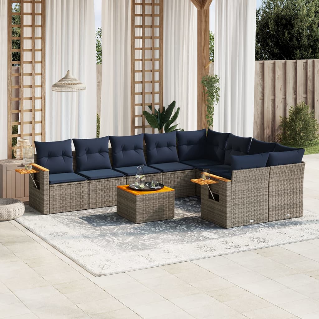 10-tlg. Garten-Sofagarnitur mit Kissen Grau Poly Rattan