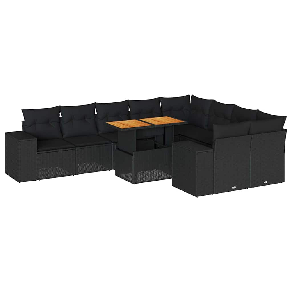 Diese Garten-Sofagarnitur ist die perfekte Ergänzung zu deinem Garten, deiner Terrasse oder deinem Innenhof. Sie bietet einen bequemen und einladenden Platz, um mit Familie und Freunden zu plaudern oder dich einfach nur zu entspannen und das Leben im Freien zu genießen.Langlebiges Material: PE-Rattan, auch als Poly Rattan bekannt, ist ein robustes, pflegeleichtes synthetisches Material, das die Optik von natürlichem Rattan aufweist. Es kennzeichnet sich durch ein geringes Eigengewicht und lässt sich einfach reinigen. Aufgrund seiner Haltbarkeit und Witterungsbeständigkeit wird es häufig bei der Herstellung von Gartenmöbeln verwendet.Stauraum mit wasserfestem Beutel: Jedes Gartensofa verfügt über ein Staufach unter der Sitzfläche, das mit einem wasserfesten Beutel zur Aufbewahrung von Kissen, Spielzeug und anderen Gegenständen versehen ist. Die Kissen sind mit Bezügen versehen und lassen sich mit Klettverschlüssen fest und sicher an den Sofas befestigen.Abnehmbarer und waschbarer Bezug: Diese Sitzkissen verfügen über abnehmbare Bezüge für einfaches Waschen und Pflegen.Modulares Design: Dank des modularen Designs lassen sich die Gartenmöbel völlig flexibel und einfach umstellen, um deinen Außenbereich ganz individuell zu gestalten.Gut zu wissen:Wir empfehlen dir, deine Gartenmöbel mit einer wasserdichten Hülle zu schützen, um lange Zeit eine ansprechende Optik aufzuweisen.