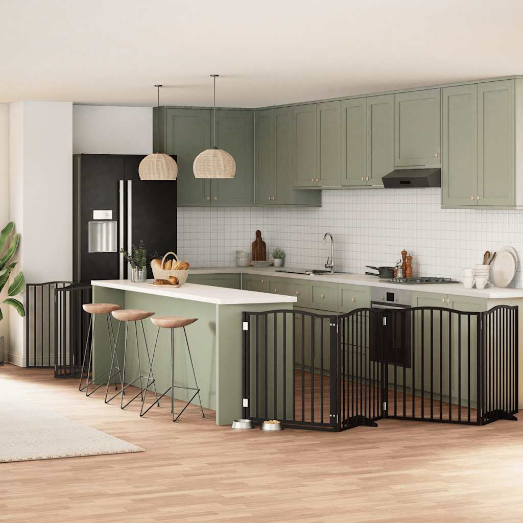 ARDEBO.de - 10-tlg. Hundetor mit Tür Faltbar Schwarz 800 cm Pappelholz