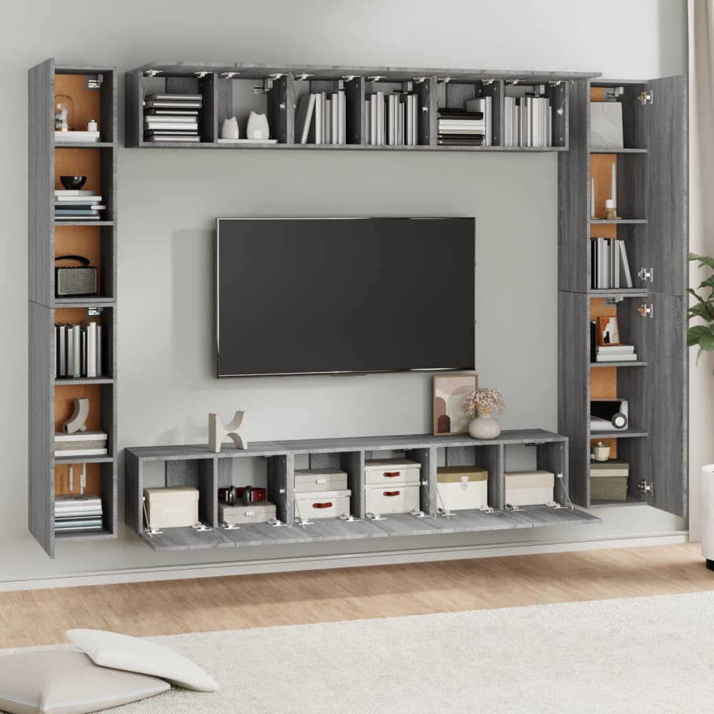 Dieses klassische TV-Schrank-Set wird mit seinem trendigen und dennoch praktischen Design zum Mittelpunkt deines Wohnzimmers. Robustes Material: Holzwerkstoff ist ein Material von außergewöhnlicher Qualität mit glatter Oberfläche, das sich durch Festigkeit, Stabilität und Feuchtigkeitsbeständigkeit auszeichnet.Viel Stauraum: Jeder TV-Schrank bietet reichlich Stauraum, um all deine Zeitschriften, DVDs und andere Gegenstände gut organisiert aufzubewahren.Wandmontage: Die TV-Konsole nimmt keine Bodenfläche ein, da sie sich einfach an der Wand befestigen lässt. Hinweis:Schrauben und Dübel für die Wandbefestigung sind nicht enthalten. Suchen und verwenden Sie die für Ihre Wände geeigneten Schrauben und Dübel. Wenn Sie unsicher sind, suchen Sie professionelle Hilfe. Lesen und befolgen Sie jeden Schritt der Anleitung sorgfältig.Jedes Produkt wird mit einer Montageanleitung in der Verpackung für eine einfache Montage geliefert.