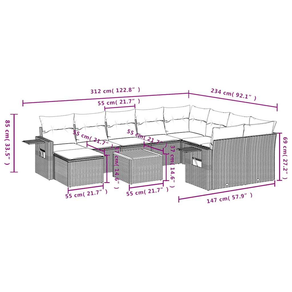 Dieses Gartensofa-Set ist die perfekte Ergänzung für Ihren Garten, Ihre Terrasse oder Ihren Innenhof und bietet einen komfortablen und einladenden Platz zum Plaudern mit Familie und Freunden oder einfach zum Entspannen und Genießen der Natur. Langlebiges Material: PE-Rattan, auch bekannt als Polyrattan, ist ein starkes, pflegeleichtes synthetisches Material, das wie natürliches Rattan aussieht. Es ist leicht, einfach zu reinigen und wird aufgrund seiner Langlebigkeit und Wetterbeständigkeit häufig für Gartenmöbel verwendet.Praktischer Beistelltisch: Dieses Gartenmöbelset verfügt über einen klappbaren Beistelltisch mit Gasdruckfeder an den Armlehnen, der einen praktischen Platz bietet, um Ihre wichtigsten Utensilien griffbereit zu haben.Stabile und leicht zu reinigende Tischplatte: Dieser Gartentisch hat eine Tischplatte aus Akazienholz, die robust, langlebig und leicht mit einem feuchten Tuch zu reinigen ist.Abnehmbarer und waschbarer Bezug: Diese Sitzkissen verfügen über abnehmbare Bezüge für einfaches Waschen und Pflegen.Modulares Design: Dieses Gartenmöbelset ist modular aufgebaut und daher völlig flexibel und leicht zu bewegen, sodass Sie Ihre Gartenmöbel individuell zusammenstellen können. Gut zu wissen:Damit Ihre Gartenmöbel schön bleiben, empfehlen wir Ihnen, sie mit einer wasserdichten Abdeckung zu schützen.