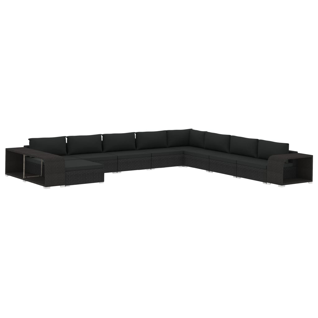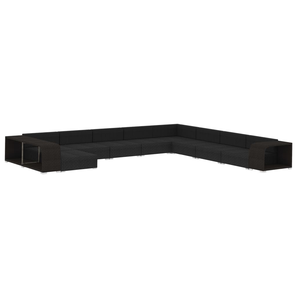 Schaffen Sie mit dieser 11-teiligen Sofagarnitur einen fesselnden und entspannenden Lounge-Bereich, von dem Sie schon immer geträumt haben. Auf diesem modularen Lounge-Set können Sie einen entspannten, sonnigen Nachmittag oder Sommerabend mit Ihrer Familie und Ihren Freunden genießen! Das Set besteht aus 11 Teilen, sodass Sie nach Belieben verschiedene Anordnungen und Kombinationen auswählen können. Aus strapazierfähigem, handgewebtem PE-Rattan und pulverbeschichtetem Stahlgestell gefertigt, ist das Möbelset robust, stabil und witterungsbeständig. Dank des allwettertauglichen PE-Rattans ist das Lounge-Set pflegeleicht, strapazierfähig und alltagstauglich. Die dick gepolsterten Auflagen und die tiefen, modernen Sitzmöbel sorgen dafür, dass Sie sich jederzeit wunderbar entspannen können. Die Sitzpolsterbezüge mit Reißverschluss sind abnehmbar und somit einfach zu waschen. Das Set enthält 2 Beistelltische in zwei Größen, die ausreichend Platz für Ihre Getränke, Obstkörbe, Bücher, Zeitschriften usw. bieten. So haben Sie alles in Reichweite. Dank das leichten und modularen Designs lässt sich dieses Set auch problemlos um Ihr Haus umstellen. Die Lieferung umfasst 1 Ecksofa, 7 Mittelsofas, 1 Ottomane, 1 kleinen Beistelltisch, 1 großen Beistelltisch, 9 Sitz- und 9 Rückenpolster. Hinweis: Wir empfehlen, die Rattan-Sitzgruppe bei Regen, Schnee und Frost abzudecken.