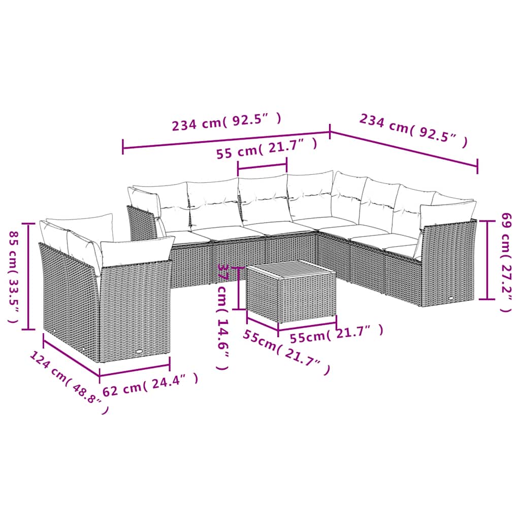 Diese Garten-Sofagarnitur ist die perfekte Ergänzung zu deinem Garten, deiner Terrasse oder deinem Innenhof. Sie bietet einen bequemen und einladenden Platz, um mit Familie und Freunden zu plaudern oder dich einfach nur zu entspannen und das Leben im Freien zu genießen. Langlebiges Material: PE-Rattan, auch als Poly Rattan bekannt, ist ein robustes, pflegeleichtes synthetisches Material, das die Optik von natürlichem Rattan aufweist. Es kennzeichnet sich durch ein geringes Eigengewicht und lässt sich einfach reinigen. Aufgrund seiner Haltbarkeit und Witterungsbeständigkeit wird es häufig bei der Herstellung von Gartenmöbeln verwendet.Stauraum mit wasserfestem Beutel: Jedes Gartensofa verfügt über ein Staufach unter der Sitzfläche, das mit einem wasserfesten Beutel zur Aufbewahrung von Kissen, Spielzeug und anderen Gegenständen versehen ist. Die Kissen sind mit Bezügen versehen und lassen sich mit Klettverschlüssen fest und sicher an den Sofas befestigen.Stabile und pflegeleichte Tischplatte: Dieser Gartentisch besitzt eine Tischplatte aus Akazienholz, die robust und langlebig ist und sich leicht mit einem feuchten Tuch reinigen lässt.Abnehmbarer und waschbarer Bezug: Diese Sitzkissen verfügen über abnehmbare Bezüge für einfaches Waschen und Pflegen.Modulares Design: Dank des modularen Designs lassen sich die Gartenmöbel völlig flexibel und einfach umstellen, um deinen Außenbereich ganz individuell zu gestalten. Gut zu wissen:Wir empfehlen dir, deine Gartenmöbel mit einer wasserdichten Hülle zu schützen, um lange Zeit eine ansprechende Optik aufzuweisen.
