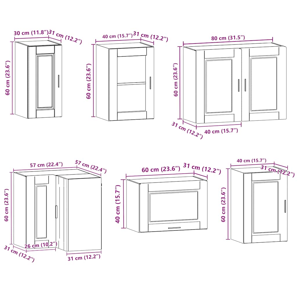 - 1 x Küchen-Hängeschrank: 80 x 31 x 60 cm (B x T x H)