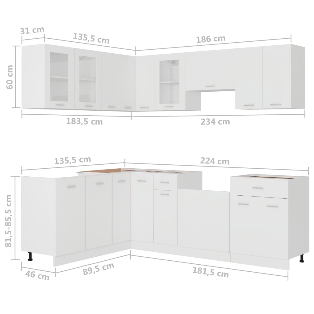 11-tlg. Küchenzeile Lyon Weiß Holzwerkstoff
