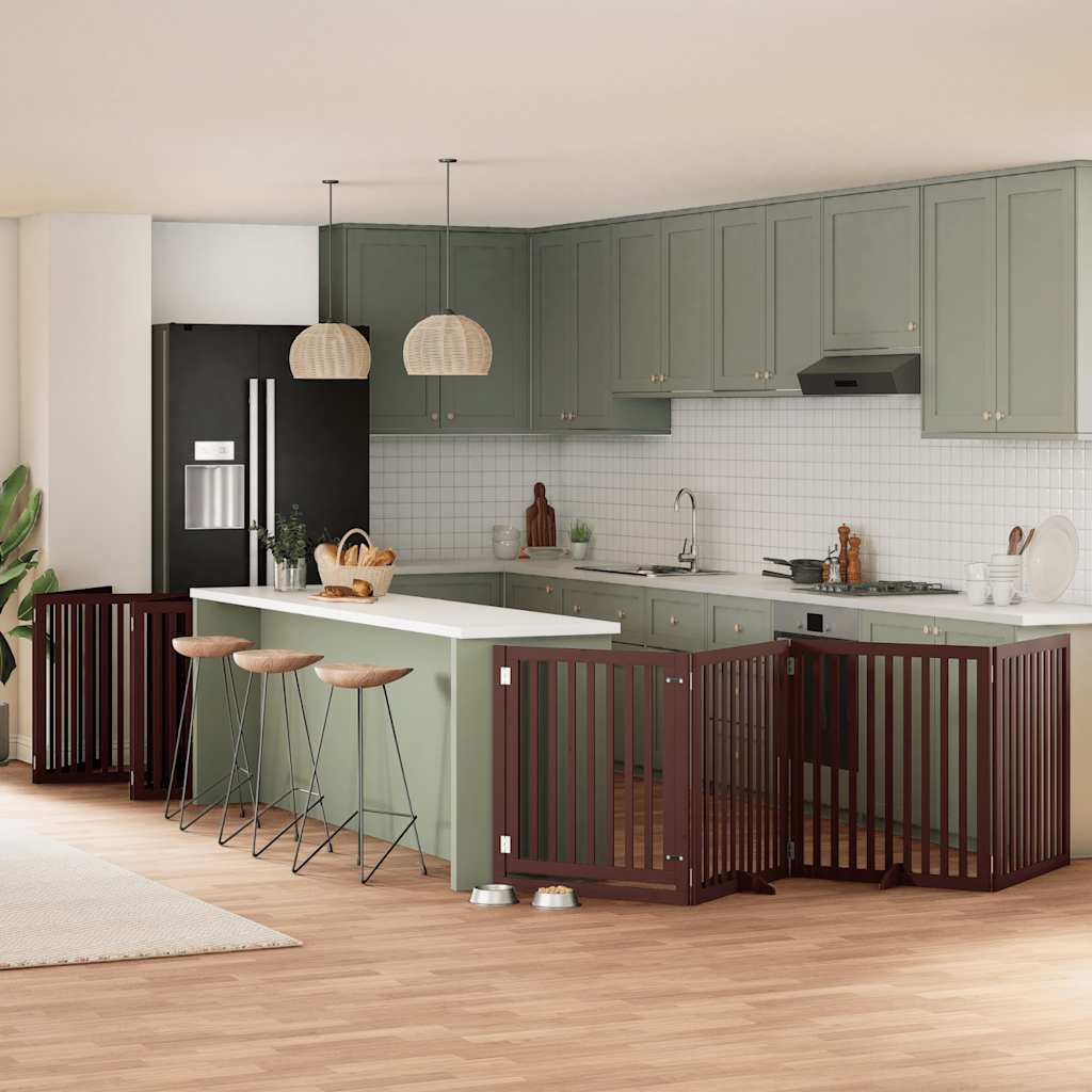 Mit diesem Hundetor kannst du dein Haustier in einem von dir bestimmten Aktivitätsbereich halten, um für dessen Sicherheit zu sorgen und nicht gestört zu werden. Langlebiges Material: Das Hundegitter besteht aus Pappelholz mit Lackierung auf Wasserbasis, was es nicht nur haltbar und langlebig macht, sondern auch eine einfache Reinigung ermöglicht.Benutzerfreundlich: Das Hundetor lässt sich ohne Bohren anbringen, sodass es nach der Demontage keine Schäden in deinem Zuhause hinterlässt. Du kannst das Hundegitter auch komplett zusammenfalten, um den Transport zu erleichtern und es platzsparend in einem Schrank oder an einem anderen Ort zu verstauen.Praktisches Design: Das Hundegitter verfügt über zwei stabile Stützbeine, die für Stabilität sorgen und einfache Anpassungen ermöglichen. Darüber hinaus ist es auch mit einer abschließbaren Tür ausgestattet, die sowohl dir als auch deinen Haustieren mehr Sicherheit und Bequemlichkeit bietet.Vielseitig einsetzbar: Dieses Hundegitter verhindert effektiv, dass deine Haustiere darüber springen und durchkommen. Daher eignet es sich perfekt, um deine Haustiere im Wohnzimmer, in der Küche, auf der Treppe und im Haus sicher zu halten.