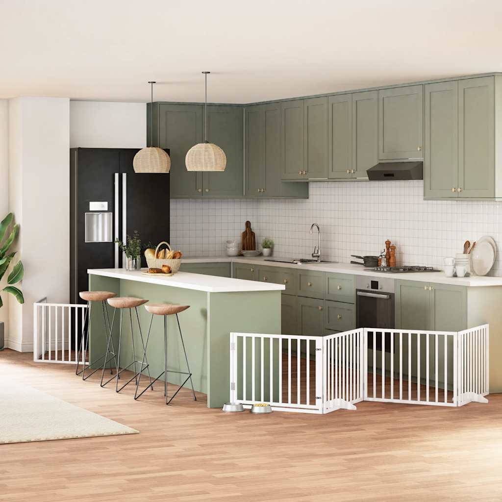 Preview: ARDEBO.de - 12-tlg. Hundetor mit Tür Faltbar Weiß 960 cm Pappelholz