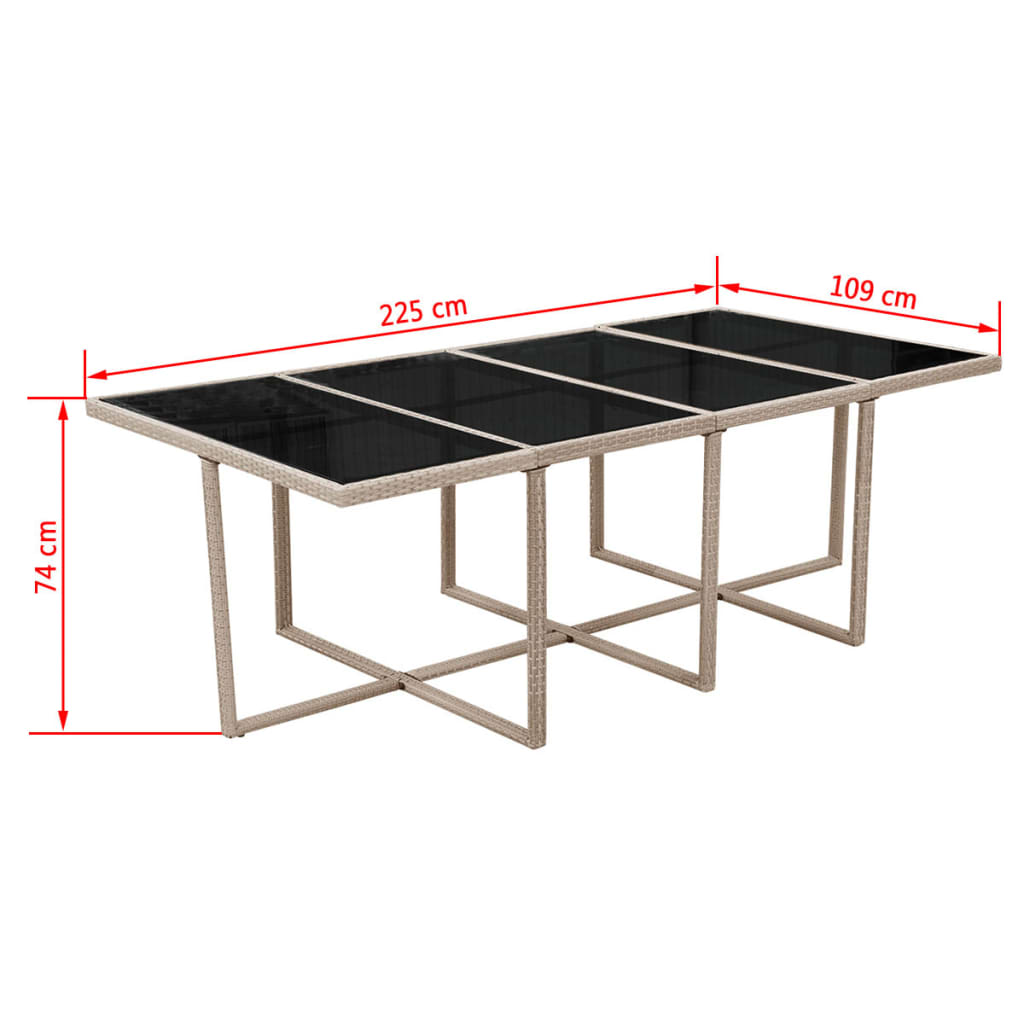 - Tischmaße: 225 x 109 x 74 cm (L x B x H)