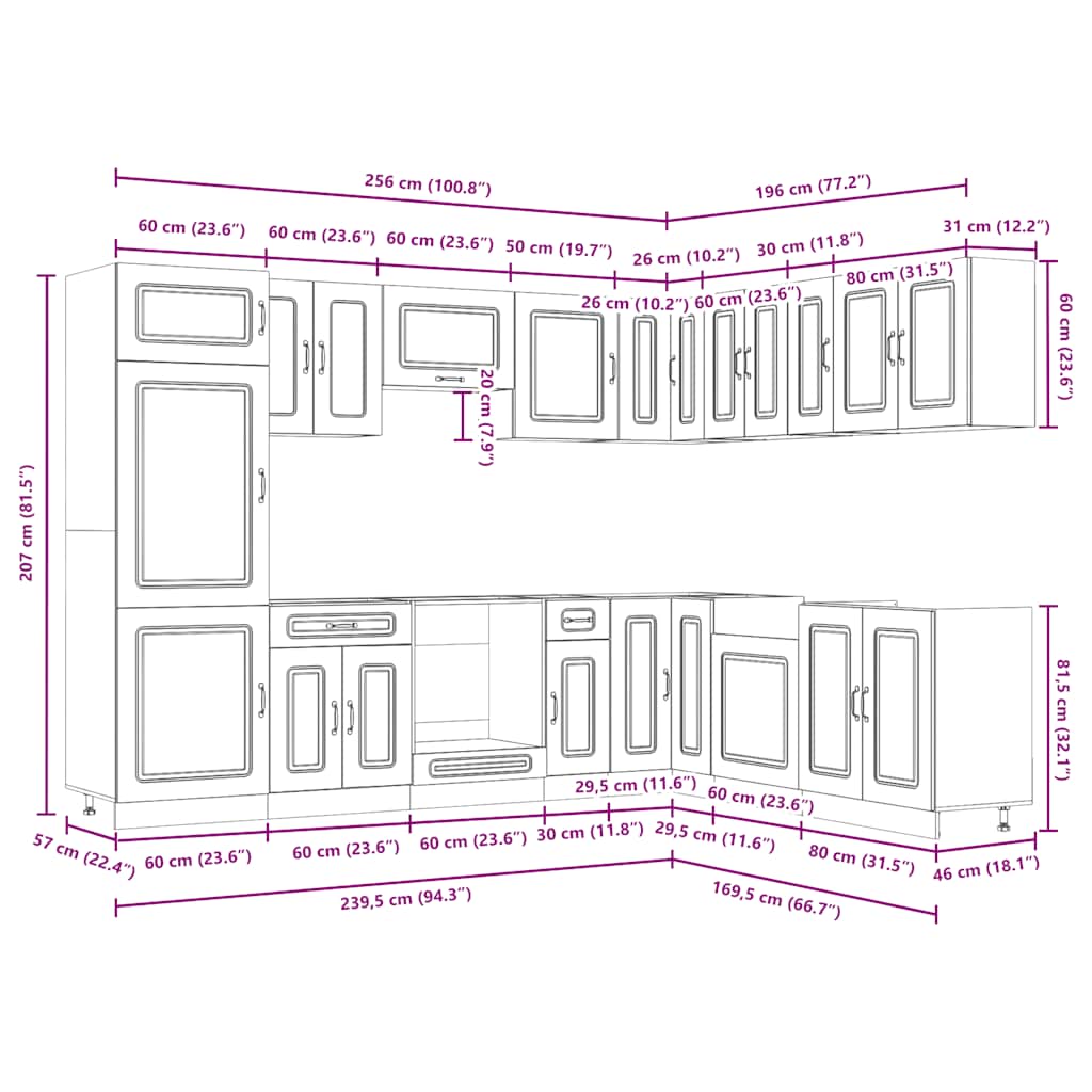 - 1 x Küchenschrank: 60 x 57 x 207 cm (B x T x H)