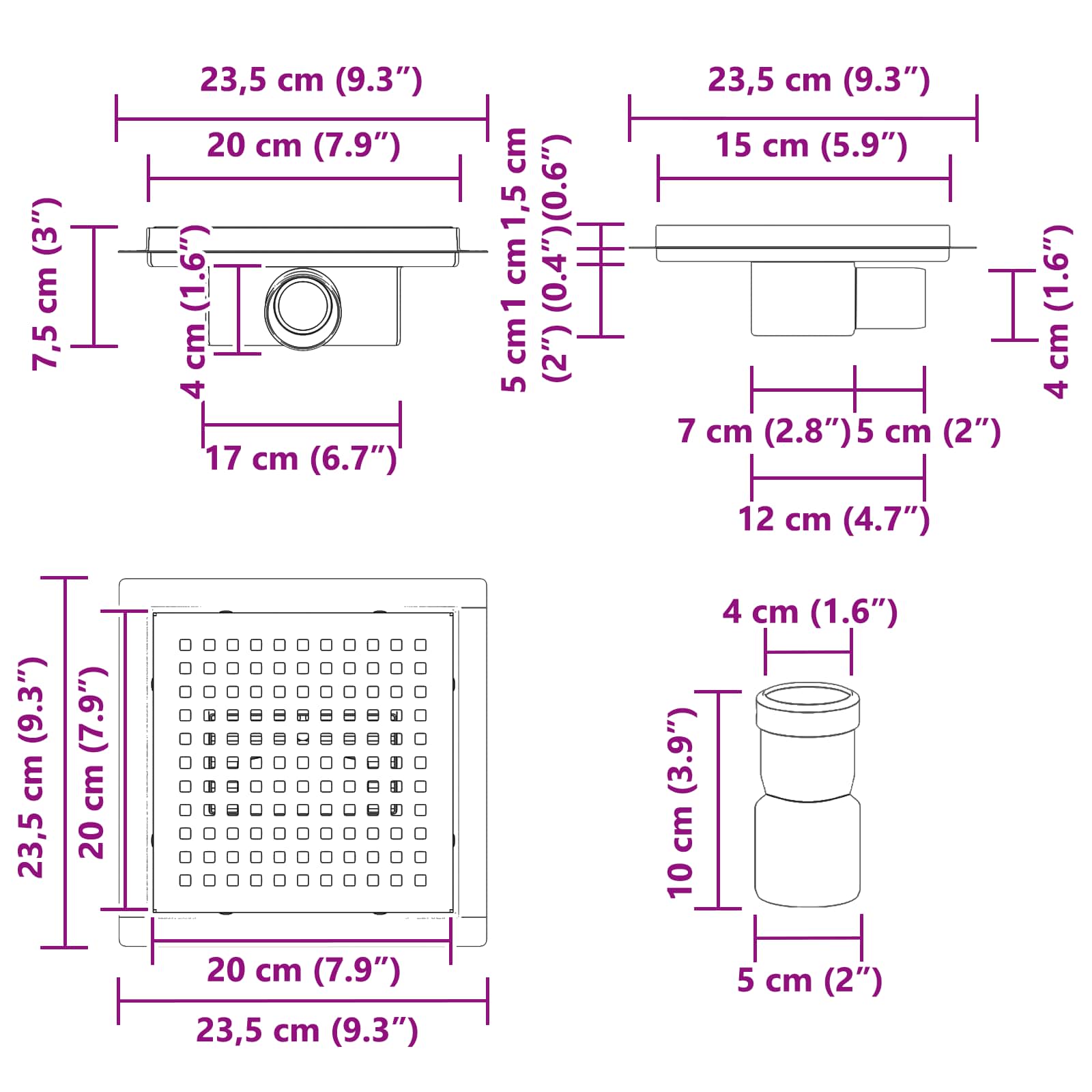 - Gesamtabmessungen: 20 x 20 cm (L x B)