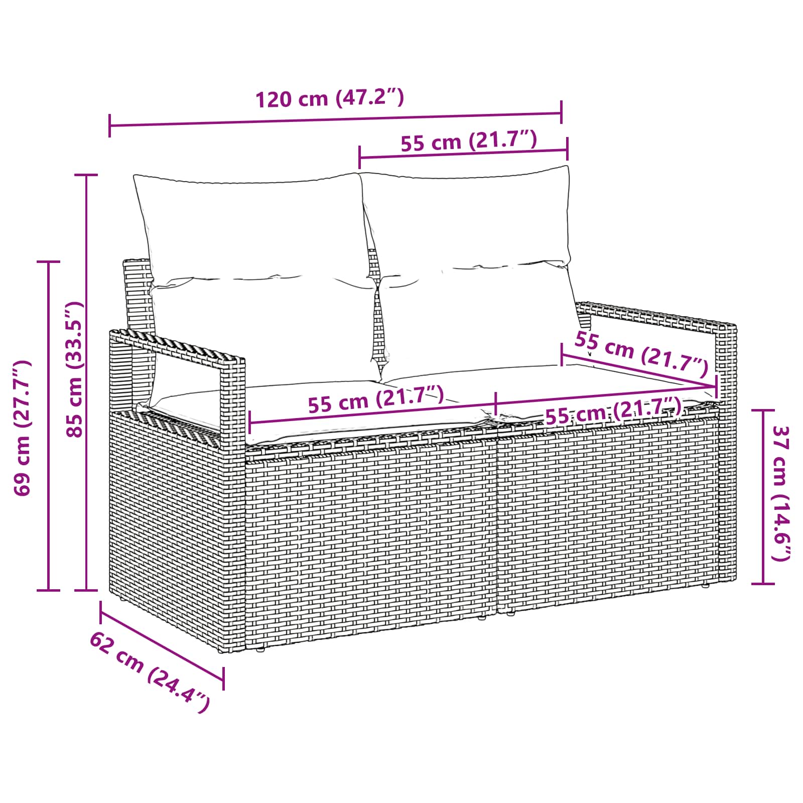 - Abmessungen: 120 x 62 x 69 cm (L x B x H)