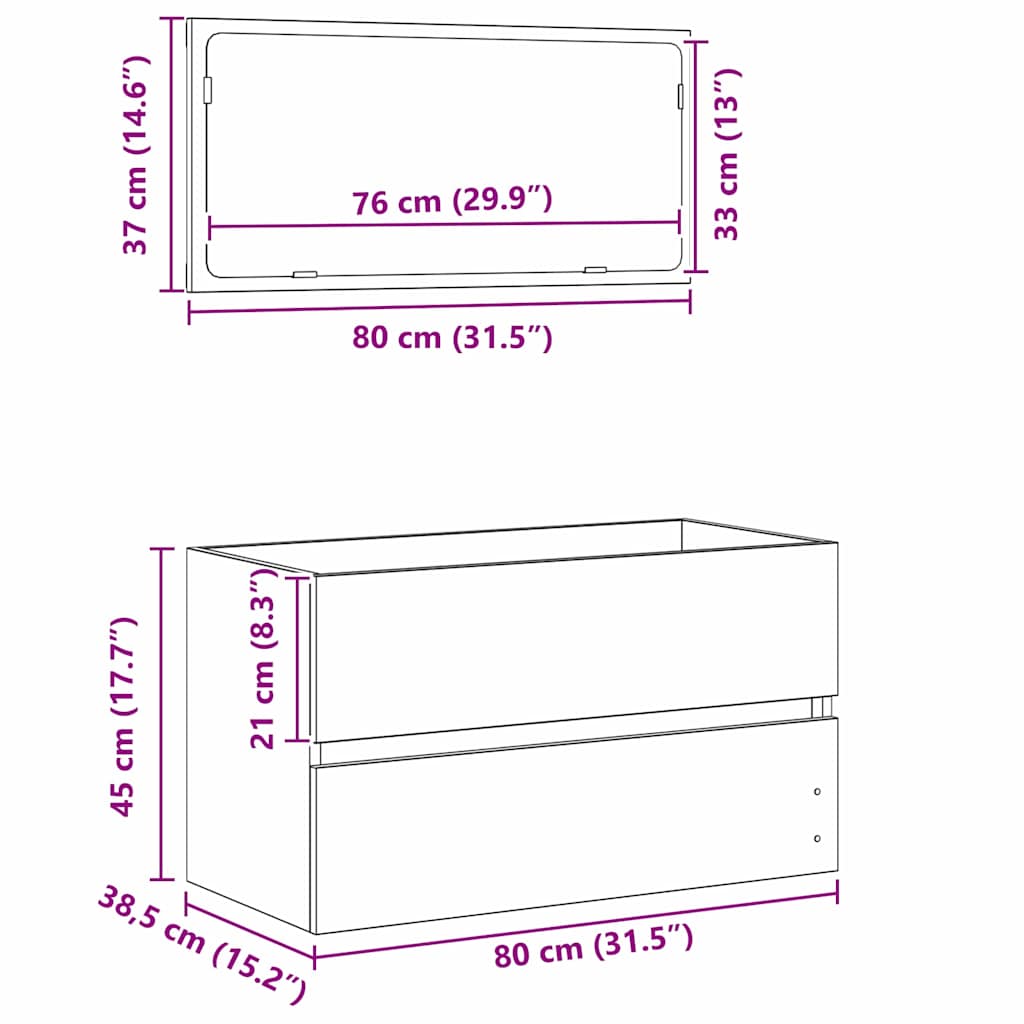 Der Waschtisch aus schwarzer Eiche mit Spiegel ist ideal fr jedes Badezimmer. Er ist fr Erwachsene gedacht, die einen stylischen Ort zum Verstauen ihrer Sachen suchen. Mit seiner glatten Oberflche und dem matten Finish bringt er eine moderne Note. Das rechteckige Design hat zwei robuste Schubladen aus Spanplatte, die deine Badezimmerartikel ordentlich verstaut. Perfekt fr kleine Rume, verbindet er Stil mit Funktionalitt. Egal, ob du dich fr den Tag fertig machst oder einen praktischen Stauraum brauchst, dieses vielseitige Mbelstck erfllt alle deine Bedrfnisse.