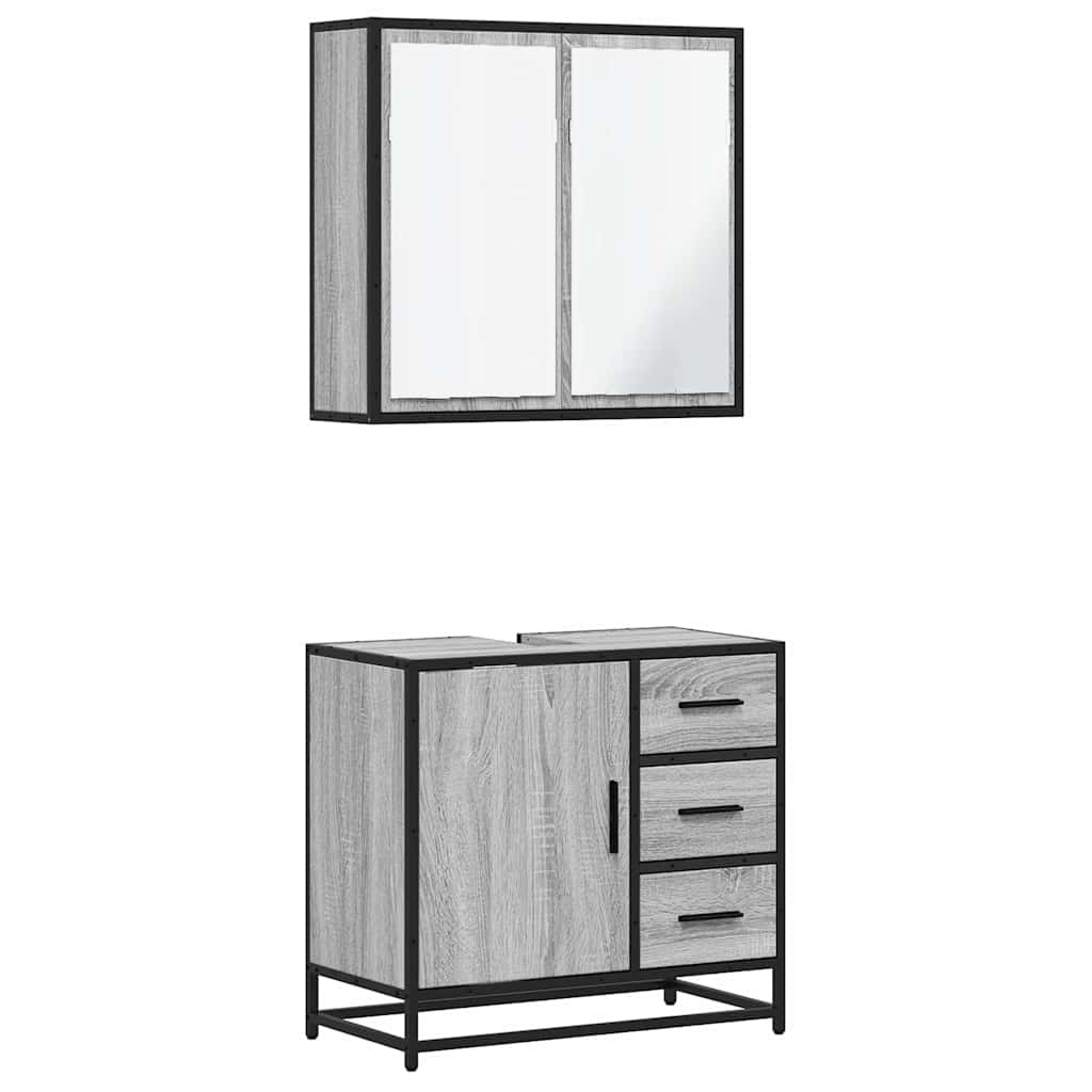 Dieses stilvolle Badmöbel-Set ist eine hervorragende Ergänzung zu deinem Badezimmer und verleiht ihm ein aufgeräumtes und eindrucksvolles Aussehen! Starkes und langlebiges Material: Holzwerkstoff ist ein langlebiges und robustes Material mit einer glatten Oberfläche, das gegen Feuchtigkeit, Verformung und Rissbildung beständig ist, wodurch es eine zuverlässigen Wahl für die Herstellung von Möbeln ist.Stabil und haltbar: Mit einem Metallgestell versehen, verleiht das Lowboard deinem Interieur eine industrielle Note und bietet außergewöhnliche Haltbarkeit, Stabilität und Korrosionsbeständigkeit.Reichlich Stauraum: Der Waschbeckenunterschrank bietet reichlich Stauraum, um wichtige Sachen ordentlich und griffbereit aufzubewahren.Praktische Oberplatte: Der Bad-Unterschrank ist oben mit einer Öffnung versehen, wodurch er sich ideal zum Aufnehmen des Waschbeckens eignet.Wandmontage: Der Badezimmer-Spiegelschrank lässt sich platzsparend an der Wand montieren und eignet sich daher perfekte für kleinere Räume. Achtung:Um ein Umkippen zu vermeiden, sollte dieses Produkt mit der mitgelieferten Wandhalterung gesichert werden. Gut zu wissen:Schrauben und Dübel für die Montage an der Wand sind nicht enthalten. Passendes Montagezubehör muss separat gekauft werden. Wenn du dir bezüglich der Montage nicht sicher bist, wende dich bitte an einen Fachmann. Bitte lies und befolge jeden Schritt in der Anleitung.