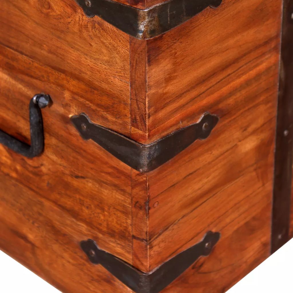 Diese einzigartigen Aufbewahrungstruhen, die aus Massivholz gefertigt und mit honigfarbenem Finish versehen sind, werden dein Zuhause großartig ergänzen. Die Holztruhen bieten ausreichenden Stauraum für Kleidung, Zeitschriften, Bücher, Spielzeuge, Werkzeuge und andere Sachen. Sie verfügen über Riegel vorne und zwei seitliche Griffe. Dank ihrer robusten und flachen Deckel können diese Holzboxen auch als Couchtisch, Kaffeetisch, Wohnzimmertisch, Beistelltisch, usw. verwendet werden. Die Holztruhen sind aus Massivholz handgefertigt und weisen eine Palisander-Optik auf. Jedes Möbelstück ist dank der exzellenten Handwerkskunst und der schönen Holzmaserung einzigartig und unverwechselbar. Die Lieferung umfasst 2 Truhen. Wichtiger Hinweis: Die Farben variieren von Möbelstück zu Möbelstück, was jede Aufbewahrungstruhe zu einem Unikat macht. Die Lieferung erfolgt nach dem Zufallsprinzip.