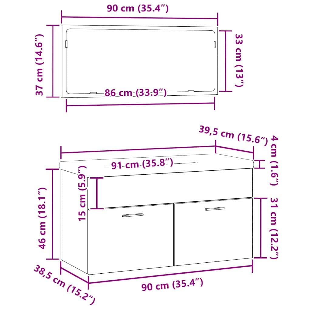 - Lieferung enthält: 1 x Waschbeckenunterschrank mit Becken, 1 x Wandspiegel