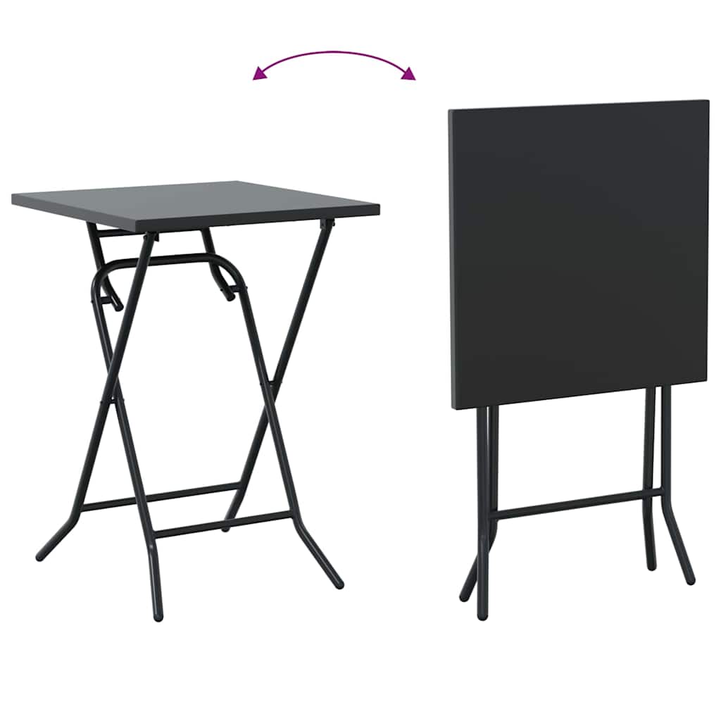 Dieses vidaXL 3-teilige faltbare Bistro-Set ist perfekt, um dein Ess-Erlebnis im Freien auf Balkonen oder Patios aufzupimpen. Der schicke anthrazitfarbene Look bringt modernen Style und ist super praktisch, was es zu einer tollen Wahl für chillige Mahlzeiten oder Drinks mit Freunden macht. Dank der faltbaren Funktion lässt sich das Set einfach lagern und transportieren ? es nimmt fast keinen Platz ein, wenn's nicht gebraucht wird. Jedes Teil besteht aus robustem pulverbeschichtetem Stahl, was die Haltbarkeit und Wetterbeständigkeit erhöht. Der quadratische Tisch passt perfekt zum minimalistischen Look und lädt zu zwanglosem Essen für bis zu zwei Personen ein. Die glatten Oberflächen sehen nicht nur toll aus, sondern machen die Reinigung auch super leicht. Ideal für kleine Balkone oder Außenbereiche ? dieses Set vereint Komfort mit Style.