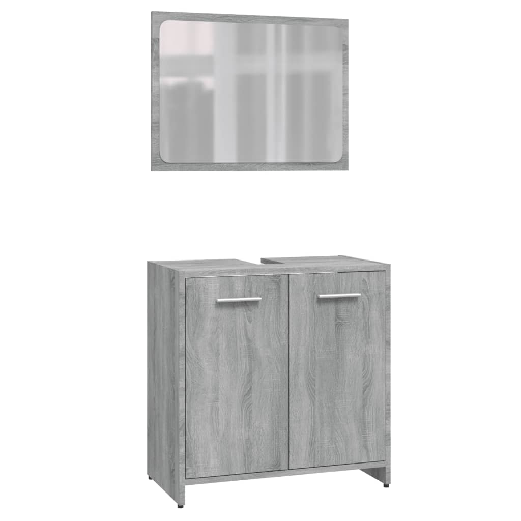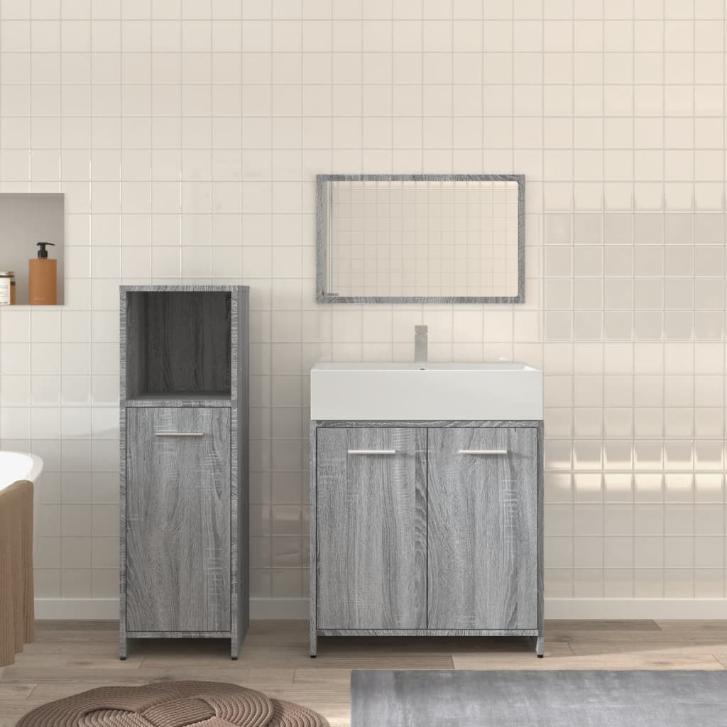Dieses 3-teilige Badmöbel-Set stellt reichlich Stauraum zur Verfügung und ist eine schicke und zeitlose Ergänzung zu jedem Badezimmer oder Waschraum. Langlebiges Material: Holzwerkstoff ist ein Material von außergewöhnlicher Qualität mit glatter Oberfläche, das sich durch Festigkeit, Stabilität und Feuchtigkeitsbeständigkeit auszeichnet.Viel Stauraum: Der Badezimmerschrank bietet verschiedene Aufbewahrungsmöglichkeiten und zusätzlichen Platz, um verschiedene Sachen in deinem Badezimmer zu verstauen. Stilvolles Design: Durch seine klaren Linien und sein elegantes Design fügt sich das Badezimmer-Set perfekt in dein Badezimmer ein. Der Spiegel verleiht deiner Einrichtung einen hervorragenden Look. Praktische Griffe: Jede Tür ist mit einem Griff versehen, der das Öffnen und Schließen erleichtert. Einfache Reinigung: Der Waschbeckenschrank lässt sich leicht mit einem feuchten Tuch reinigen. Achtung:Um das Umkippen zu verhindern, muss dieses Produkt mit der mitgelieferten Wandhalterung gesichert werden. Hinweis:Jedes Produkt wird mit einer Montageanleitung in der Verpackung für einen einfachen Zusammenbau geliefert.
