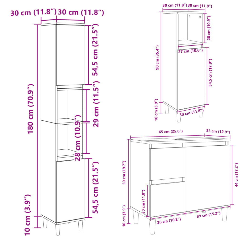 3-tlg. Badmöbel-Set Sonoma-Eiche Holzwerkstoff