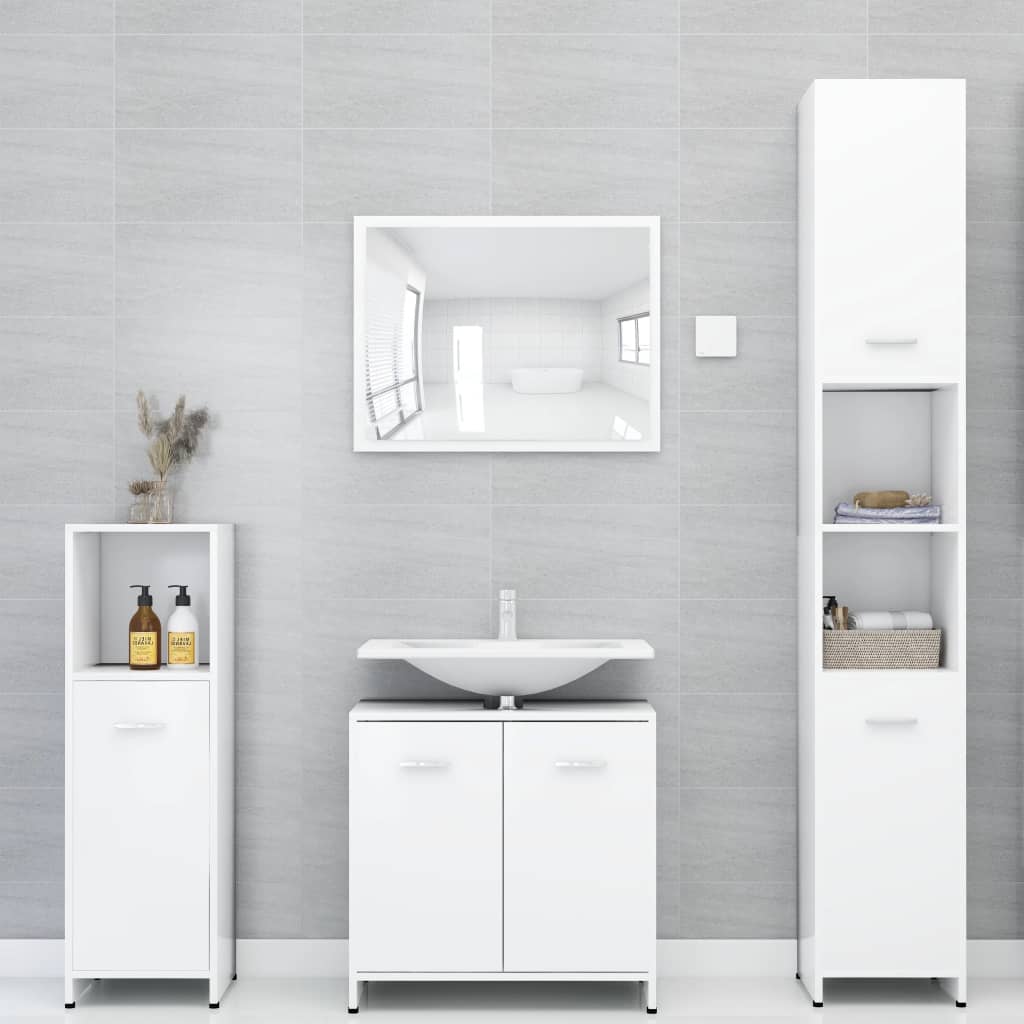 Dieses stilvolle Badmöbel-Set mit 1 mittelgroßen Schrank, 1 Unterschrank und 1 Spiegel schafft zusätzlichen Stauraum für Ihr Badezimmer mit einem atemberaubenden und gepflegten Erscheinungsbild. Dieses Set aus hochwertigem Holzwerkstoff ist langlebig und stabil. Der schicke mittelgroße Schrank verfügt über 3 Fächer und 1 Tür und bietet viel Platz für die Aufbewahrung von Gegenständen in Ihrem Badezimmer. Der Waschbecken-Unterschrank verfügt über 1 Fach und 2 Türen und bietet ausreichend Platz für Ihre Toilettenartikel, Schönheitsprodukte und verschiedene kleinere Gegenstände. Sie können sogar Kämme, Kosmetika, Zahnbürsten und Zahnpasta in den Regalen in bequemer Reichweite organisieren. Der Spiegel verleiht Ihrer bestehenden Einrichtung ein ausgezeichnetes Aussehen. Darüber hinaus ist dieses Badmöbel-Set leicht mit einem feuchten Tuch zu reinigen.
