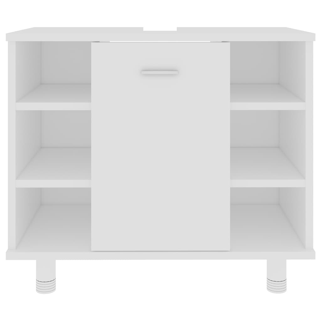 Dieses stilvolle Badmöbel-Set verfügt über 1 Mittelschrank, 1 Unterschrank und 1 Spiegelschrank. Es schafft zusätzlichen Stauraum für Ihr Badezimmer mit einem atemberaubenden und gepflegten Erscheinungsbild. Dieses Set aus hochwertigem Holzwerkstoff ist langlebig und stabil. Der schicke mittelgroße Schrank verfügt über 3 Fächer und 1 Tür und bietet viel Platz für die Aufbewahrung von vielerlei Sachen in Ihrem Badezimmer. Der Waschbeckenschrank verfügt über 7 Fächer und 1 Tür und bietet ausreichend Platz für Ihre Toilettenartikel, Schönheitsprodukte und verschiedene wichtige Dinge. Der Spiegelschrank verfügt über 1 Tür und insgesamt 8 Fächer. Die 6 Außenfächer und 2 Innenfächer bieten zusätzlichen Platz für wichtige Badutensilien. Der Spiegel verleiht Ihrer Einrichtung ein hervorragendes Aussehen. Darüber hinaus ist dieses Badmöbel-Set mit einem feuchten Tuch leicht zu reinigen.
