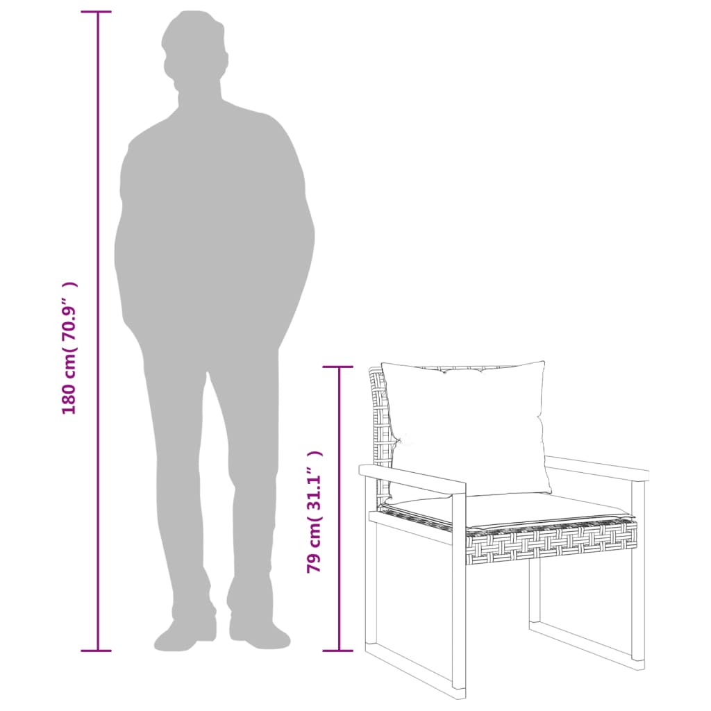 Genieße einen Kaffee oder unterhalte dich mit deiner Familie und deinen Freunden im Garten, Hinterhof oder auf dem Balkon mit diesem bequemen Bistro-Set! Langlebiges Material: PE-Rattan, auch als Poly Rattan bekannt, ist ein robustes, pflegeleichtes synthetisches Material, das die Optik von natürlichem Rattan aufweist. Es kennzeichnet sich durch ein geringes Eigengewicht und lässt sich einfach reinigen. Aufgrund seiner Haltbarkeit und Witterungsbeständigkeit wird es häufig bei der Herstellung von Gartenmöbeln verwendet.Bequemes Sitzerlebnis: Dieser Gartensessel mit dick gepolsterten Kissen bietet ein angenehmes Sitzgefühl.Abnehmbarer und waschbarer Bezug: Diese Sitzkissen verfügen über abnehmbare Bezüge für einfaches Waschen und Pflegen.Stabile und pflegeleichte Tischplatte: Dieser Gartentisch besitzt eine Tischplatte aus Akazienholz, die robust und langlebig ist und sich leicht mit einem feuchten Tuch reinigen lässt.Robuster und stabiler Rahmen: Dank des pulverbeschichteten Stahlrahmens ist das Outdoor-Möbel robust, stabil und für den täglichen Einsatz im Außenbereich geeignet. Gut zu wissen:Wir empfehlen dir, deine Gartenmöbel mit einer wasserdichten Hülle zu schützen, um lange Zeit eine ansprechende Optik aufzuweisen.