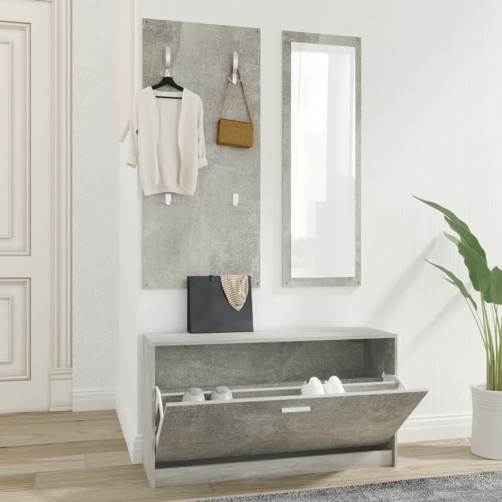 Dieses 3-teilige Flurmöbel-Set besteht aus einem stilvollen Schuhschrank, einem Wandspiegel und einer Garderobe und bietet eine Vielzahl von Aufbewahrungsmöglichkeiten. Robustes Material: Holzwerkstoff ist ein Material von außergewöhnlicher Qualität mit glatter Oberfläche, das sich durch Festigkeit, Stabilität und Feuchtigkeitsbeständigkeit auszeichnet.Viel Stauraum: Der Schuhschrank verfügt über ein großes Fach mit einer mittleren Trennwand, um deine Sachen ordentlich aufzubewahren. So wirst du dich nie wieder über herumliegende Schuhe ärgern.Praktisches Design: Die Garderobe ist mit 4 stabilen Kleiderhaken für Mäntel, Taschen, Hüte, Schals und andere Gegenstände ausgestattet. Der Spiegel ist groß genug, um dich beim Ausgehen vorzubereiten. Hinweis:Jedes Produkt wird mit einer Montageanleitung in der Verpackung für eine einfache Montage geliefert.