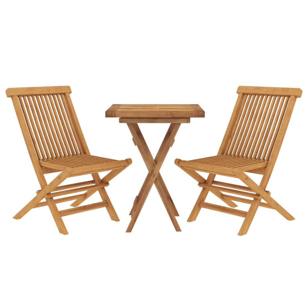 Mit ihrem eleganten Design ist diese Garten-Essgruppe aus Holz eine ausgezeichnete Wahl für Mahlzeiten oder zum Entspannen auf deiner Terrasse bzw. in deinem Garten. Massives Teakholz: Massives Teakholz ist ein wunderschönes Naturmaterial. Es wurde abgelagert, getrocknet und anschließend fein geschliffen, um eine sehr glatte Optik und Haptik zu erhalten. Teakholz ist für seine außergewöhnliche Festigkeit und Witterungsbeständigkeit bekannt.Robust: Der Holzrahmen sorgt für Robustheit und Stabilität.Zusammenklappbares Design: Diese Holzstühle und der Tisch lassen sich leicht zusammenklappen, wenn sie nicht gebraucht werden. Hinweis:Um die Lebensdauer deiner Gartenmöbel zu verlängern, empfehlen wir dir, sie mit einer wasserdichten Hülle zu schützen.