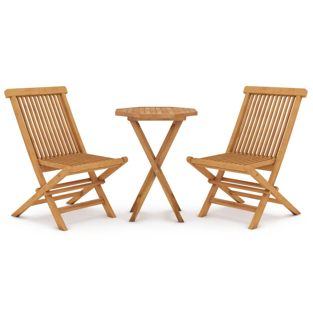 Mit ihrem eleganten Design ist diese Garten-Essgruppe aus Holz eine ausgezeichnete Wahl für Mahlzeiten oder zum Entspannen auf deiner Terrasse bzw. in deinem Garten. Massives Teakholz: Massives Teakholz ist ein wunderschönes Naturmaterial. Es wurde abgelagert, getrocknet und anschließend fein geschliffen, um eine sehr glatte Optik und Haptik zu erhalten. Teakholz ist für seine außergewöhnliche Festigkeit und Witterungsbeständigkeit bekannt.Robust: Der Holzrahmen sorgt für Robustheit und Stabilität.Zusammenklappbares Design: Diese Holzstühle und der Tisch lassen sich leicht zusammenklappen, wenn sie nicht gebraucht werden. Hinweis:Um die Lebensdauer deiner Gartenmöbel zu verlängern, empfehlen wir dir, sie mit einer wasserdichten Hülle zu schützen.