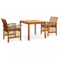 Schaffen Sie mit dieser Garten-Essgruppe eine überzeugende und zusammenhängende Ästhetik in Ihrem Außenbereich! Der Esstisch besteht aus massivem Akazienholz, einem Hartholz mit dichter Maserung, das ihn robust, langlebig und pflegeleicht macht. Auf der Holztischplatte können Speisen, Getränke und andere Gegenstände abgestellt werden. Mit einem Holzrahmen mit Öl-Finish verleihen diese Esszimmerstühle Ihrer Terrasse oder Ihrem Garten einen klassischen Look und bieten Ihrem Außenbereich ein natürliches Gefühl. Die dick gepolsterten Kissen sorgen zudem für zusätzlichen Sitzkomfort beim Liegen. Außerdem ist dieses Set mit einem feuchten Tuch leicht zu reinigen. Hinweis: Um die Lebensdauer Ihrer Gartenmöbel zu verlängern, empfehlen wir Ihnen, diese regelmäßig zu reinigen und im Freien vor Niederschlägen oder starken Sonnenstrahlen zu schützen.Reinigung: Verwenden Sie eine milde Seifenlösung.Lagerung: Wenn möglich, an einem kühlen, trockenen Ort im Innenbereich lagern. Wenn das Produkt im Freien gelagert wird, schützen Sie es mit einer wasserdichten Abdeckung. Wischen und trocknen Sie das überschüssige Wasser oder den Schnee nach Regen oder Schneefall von ebenen Flächen. Sorgen Sie für eine ausreichende Luftzirkulation, um feuchtigkeitsbedingte Schäden zu vermeiden.