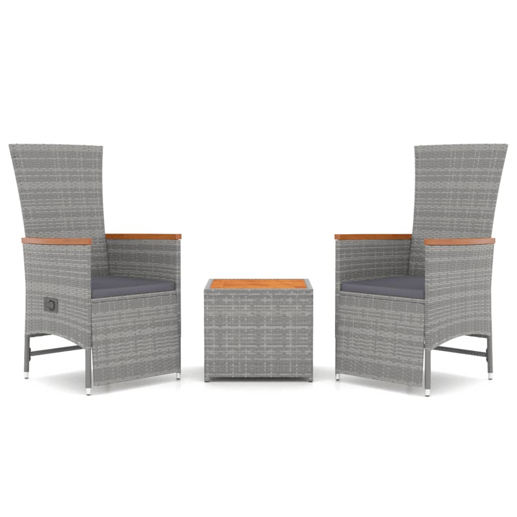 Mit seinem eleganten und modernen Design ist dieses Garten-Lounge-Set eine großartige Wahl zum Entspannen in deinem Garten. Langlebiges Material: PE-Rattan, auch als Poly Rattan bekannt, ist witterungsbeständig und pflegeleicht. Seine Oberfläche weist lange Zeit eine ansprechende Optik auf. Es bietet hohe Qualität, Komfort und einen ästhetisches Look.Stabiler Rahmen: Stahl ist ein außergewöhnlich hartes und starkes Material. Er bietet Robustheit und Stabilität.Liegefunktion: Die Gartenstühle dieses Gartenmöbel-Sets sind mit Liegefunktion ausgestattet, sodass sich Rückenlehne und Fußstütze nach Belieben einstellen lassen.Komfortables Sitzerlebnis: Dank der dick gepolsterten Sitzkissen sind die Stühle sehr bequem.Praktische Tischplatte: Die Tischplatte aus massivem Akazienholz bietet den perfekten Platz für verschiedene wichtige Sachen. Sie weist eine ansprechende Optik auf und lässt sich einfach reinigen. Hinweis:Damit deine Gartenmöbel lange schön bleiben, empfehlen wir dir, sie mit einer wasserdichten Hülle zu schützen. Gut zu wissen:Um die Montage so einfach wie möglich zu machen, wird jedes Produkt mit einer Anleitung geliefert.