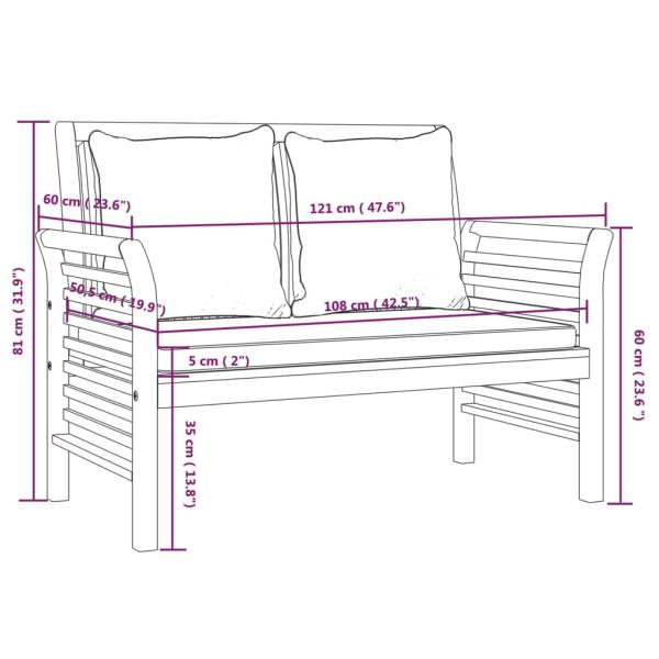 - Maße Bank: 121 x 60 x 81 cm (B x T x H)