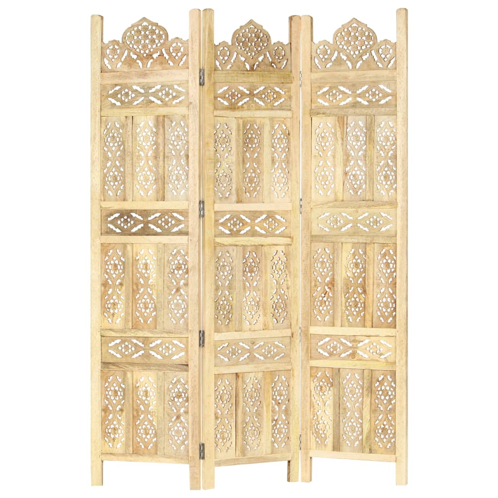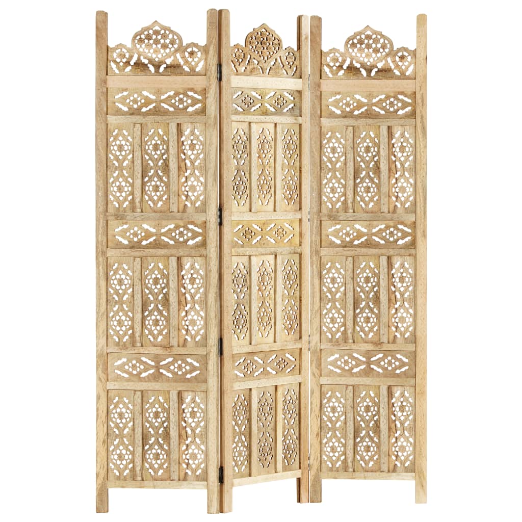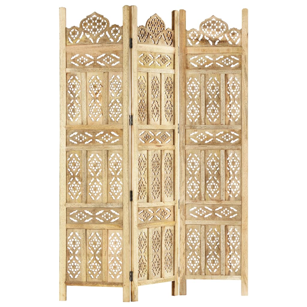 Verleihen Sie Ihrem Zuhause mit diesem eleganten, handgeschnitzten Raumteiler einen Hauch von klassischem Charme! Es ist perfekt, um es im Schlafzimmer aufzustellen, um einen separaten, privaten Ankleidebereich oder einen Teil eines Raums zu schaffen. Zusätzlich ist der Raumteiler mit massiver Mangoholzkonstruktion und mit schönen Mustern handgeschnitzt, was die klassische Schönheit des Sichtschutzes noch mehr unterstreicht. Sie kann auch leicht zusammengeklappt werden, um Platz zu sparen, wenn sie nicht in Gebrauch ist. Der Paravent ist einfach zu montieren. Hinweis: Da der Artikel handgefertigt ist, können kleine Unterschiede in Muster und Farbe auftreten.