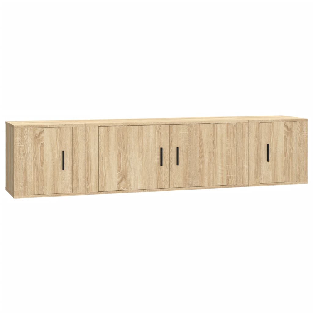 Dieses klassische TV-Schrank-Set wird mit seinem trendigen und dennoch praktischen Design zum Mittelpunkt deines Wohnzimmers. Robustes Material: Holzwerkstoff ist ein Material hoher Qualität mit glatter Oberfläche, das sich durch Festigkeit, Stabilität und Feuchtigkeitsbeständigkeit auszeichnet. Aus Holzwerkstoff gefertigt, lässt sich dieser TV-Schrank einfach reinigen.Viel Stauraum: Diese TV-Schränke bieten viel Stauraum, um all deine Zeitschriften, DVDs und andere Gegenstände gut organisiert aufzubewahren.Wandmontage: Die TV-Schränke nehmen keine Bodenfläche ein. Sie lassen sich einfach an der Wand befestigen.Praktische Türen: Schütze deine wichtigsten Sachen vor Staub, indem du sie hinter den Türen in diesen Fernsehschränken verstaust. Gut zu wissen:Um die Montage so einfach wie möglich zu machen, wird jedes Produkt mit einer Anleitung geliefert.Schrauben und Dübel sind für die Befestigung an der Wand nicht im Lieferumfang enthalten. Wir empfehlen, speziell für deine Wände geeignete Schrauben und Dübel zu finden und zu verwenden. Im Zweifelsfall wende dich an einen Fachmann. Bitte lese und befolge jeden Schritt der Anweisungen.