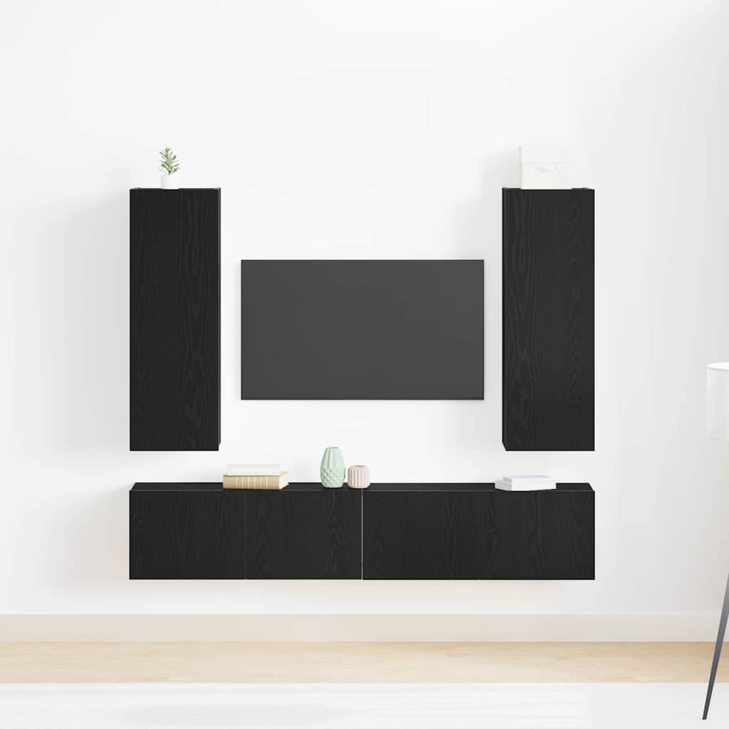 Dieses TV-Cabinet-Set ist eine coole Lösung für heutige Entertainment-Bedürfnisse und kombiniert Stil und Funktion mühelos. Es besteht aus vier wandmontierten Einheiten aus hochwertigem schwarz-oliven Holz, die deinen Wohnbereich gut aussehen lassen und gleichzeitig viel Platz für deine Gadgets und Deko bieten. Platzsparendes Design: Wandmontierte Schränke nutzen den vertikalen Raum optimal aus und halten dein Wohnzimmer aufgeräumt. Dieses Setup ist besonders geeignet für kleine Wohnungen und Häuser mit wenig Bodenfläche. Viel Stauraum: Das Set hat drei geräumige Regale, die genug Platz für Fernseher, Mediengeräte oder Deko bieten, sodass alles stets griffbereit ist. Moderne Ästhetik: Das matte schwarz-oliven Finish bringt einen zeitgemäßen Touch, ideal für jedes moderne Zuhause und fügt einen Hauch von Eleganz hinzu. Stabile und haltbare Materialien: Hergestellt aus robustem MDF und Spanplatte, ist dieses TV-Cabinet-Set auf Langlebigkeit ausgelegt und hält dem täglichen Gebrauch stand. Umfassende Pflegehinweise: Die Reinigung ist kinderleicht mit einem trockenen Tuch, und durch die Wandmontage bleibt es stabil; Schrauben und Dübel sind nicht im Lieferumfang enthalten, daher solltest du vielleicht einen Profi für spezielle Wandinstallationen hinzuziehen.