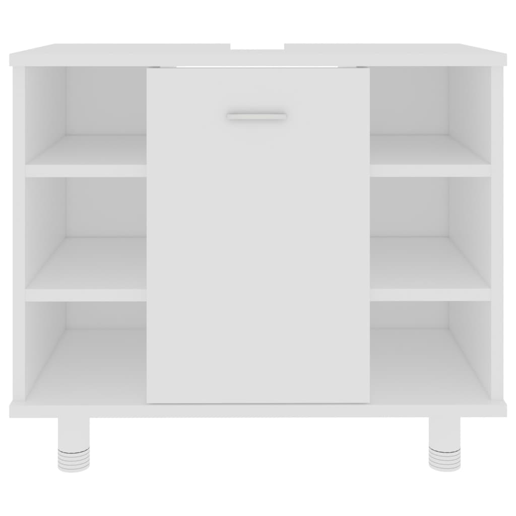 Dieses stilvolle Badmöbel-Set verfügt über 1 Hochschrank, 1 Mittelschrank, 1 Waschbeckenunterschrank und 1 Spiegelschrank. Es schafft zusätzlichen Stauraum in Ihrem Badezimmer mit seinem atemberaubenden und gepflegten Erscheinungsbild. Dieses Set aus hochwertigem Holzwerkstoff ist langlebig und robust. Der schicke Hochschrank hat 6 Fächer und 2 Türen, während der mittelgroße Schrank 3 Fächer und 1 Tür aufweist. Beide bieten viel Platz, um Ihre wichtigsten Sachen in Ihrem Badezimmer aufzubewahren. Der Waschbeckenschrank verfügt über 7 Fächer und 1 Tür und bietet ausreichend Platz für Ihre Toilettenartikel, Schönheitsprodukte und verschiedene wichtige Dinge. Der Spiegelschrank verfügt über 1 Tür und insgesamt 8 Fächer. Die 6 Außenfächer und 2 Innenfächer bieten zusätzlichen Platz für Ihre Badeartikel. Der Spiegel verleiht außerdem Ihrer bestehenden Einrichtung ein hervorragendes Aussehen. Darüber hinaus ist dieses Badmöbel-Set mit einem feuchten Tuch leicht zu reinigen.
