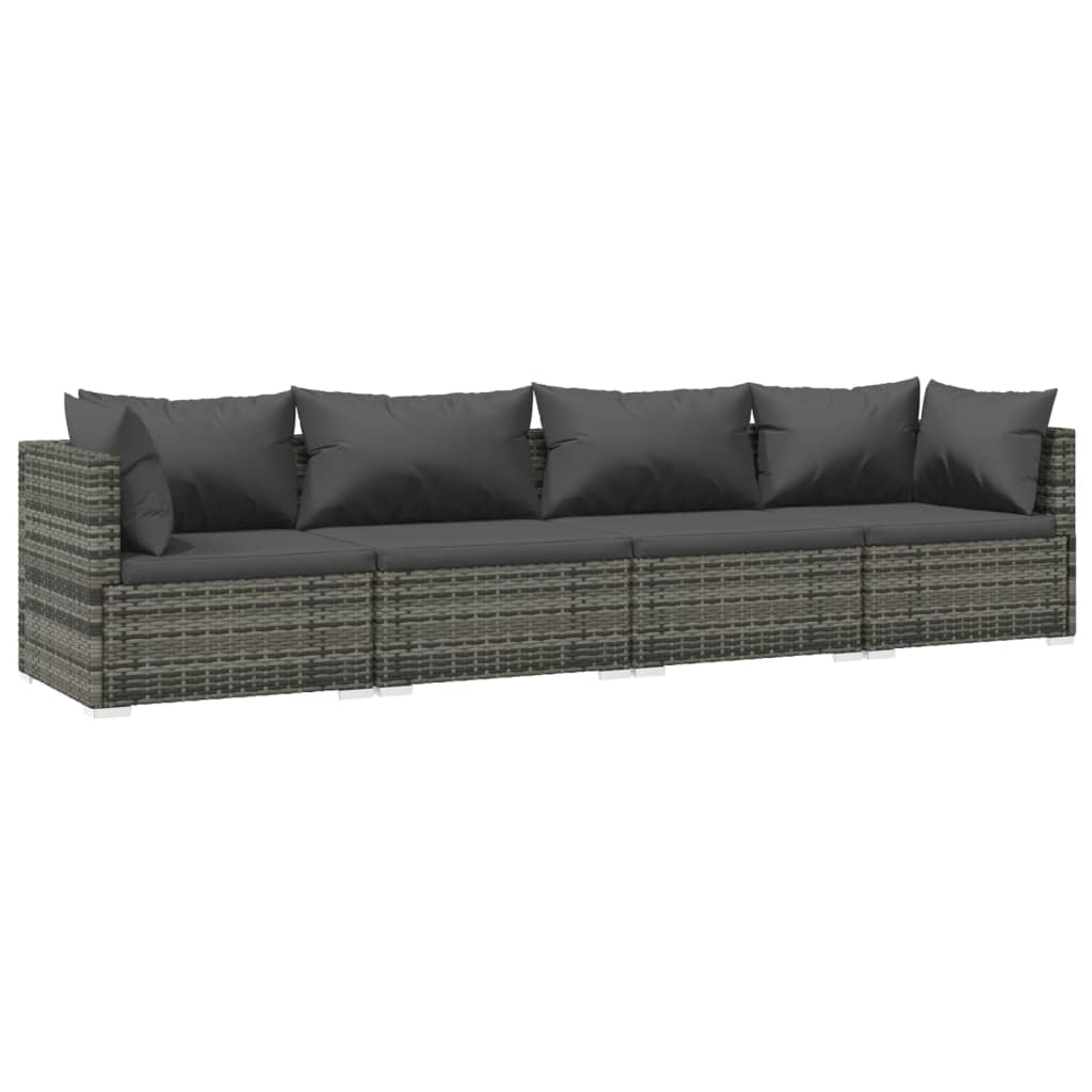Genießen Sie eine entspannte Zeit mit Ihren Freunden und Ihrer Familie in Ihrem Außenbereich auf diesem Garten-Lounge-Set aus Poly-Rattan! Modulares Design: Das modulare Design ermöglicht es, die Sessel in beliebiger Anordnung zu platzieren oder mit anderen modularen Sofa-Elementen zu kombinieren, um Ihren Bedürfnissen gerecht zu werden!Erstklassiges Material: Das Terrassen-Lounge-Set besteht aus wasserabweisendem PE-Rattan, wodurch es strapazierfähig und für den täglichen Gebrauch im Freien geeignet ist.Stabiler Rahmen: Dieses Outdoor-Lounge-Set verfügt über einen stabilen, pulverbeschichteten Stahlrahmen und verchromte Kunststofffüße, was es langlebig macht. Dank seiner Leichtbauweise lässt es sich auch einfach umstellen.Komfortable Kissen: Aus Stoff gefertigt, fühlen sich die dick gepolsterten und abnehmbaren Kissen weich an und bieten zusätzlichen Komfort. Hinweis:Um die Lebensdauer deiner Gartenmöbel zu verlängern, empfehlen wir dir, sie mit einer wasserdichten Hülle zu schützen.