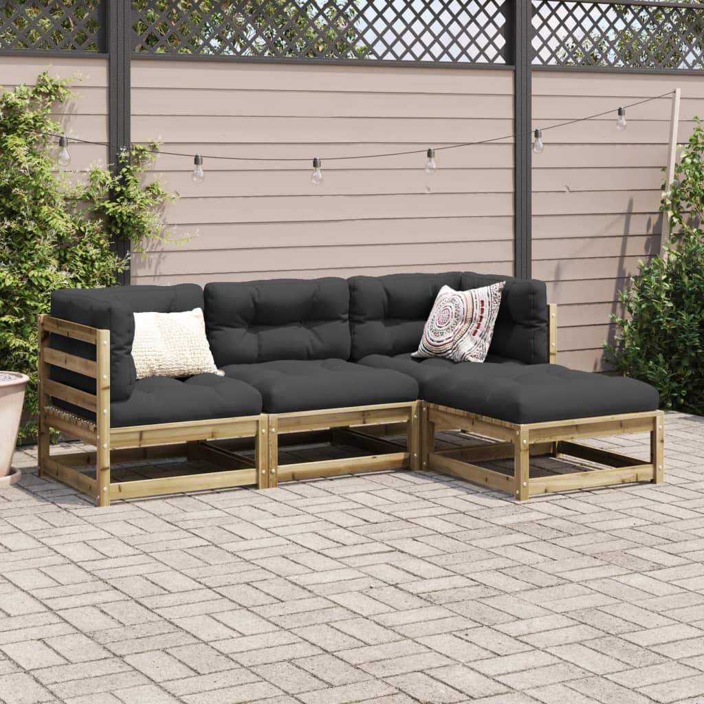 Diese Garten-Sofagarnitur ist die perfekte Ergänzung zu deinem Garten, deiner Terrasse oder deinem Innenhof. Sie bietet einen bequemen und einladenden Platz, um mit Familie und Freunden zu plaudern oder dich einfach nur zu entspannen und das Leben im Freien zu genießen. Robustes und langlebiges Material: Massives Kiefernholz ist für seine Stärke und Haltbarkeit bekannt. Seine gerade Maserung und die charakteristischen Aststellen tragen zu seinem rustikalen Charme bei. Es wurde mit einer Konservierungslösung imprägniert und mit Autoklaven behandelt, um eine höhere Verrottungs- und Witterungsbeständigkeit zu besitzen.Gute Belüftung und Verhinderung von Ansammlungen: Das Latten-Design sorgt für eine optimale Luftzirkulation und verhindert effektiv, dass sich Wasser ansammelt, wodurch die Sitzfläche stets bequem trocken bleibt.Modulares Design: Dank des modularen Designs lassen sich die Gartenmöbel völlig flexibel und einfach umstellen, um deinen Außenbereich ganz individuell zu gestalten. Gut zu wissen:Wir empfehlen dir, deine Gartenmöbel mit einer wasserdichten Hülle zu schützen, um lange Zeit eine ansprechende Optik aufzuweisen.