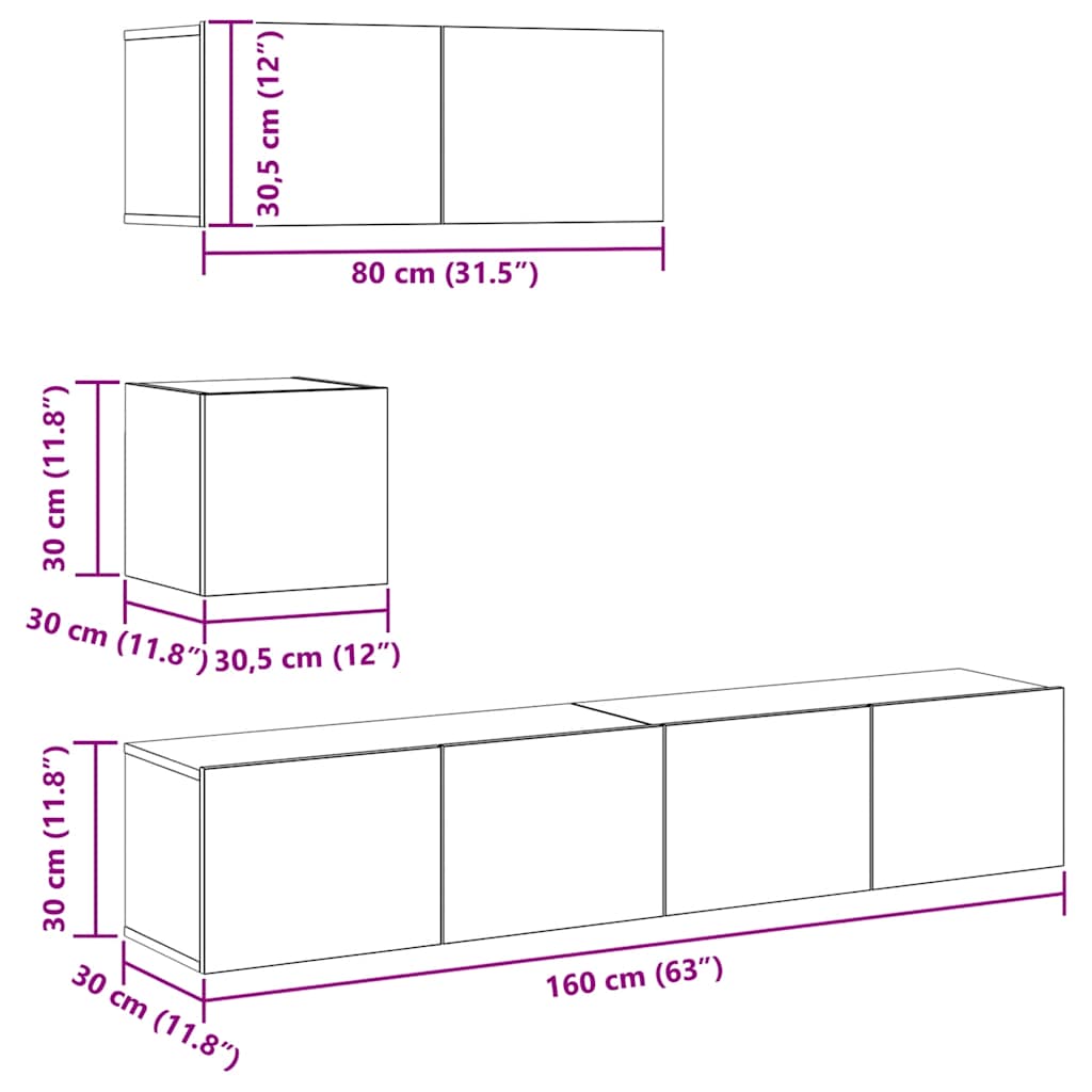 - 3 x TV-Schrank: 80 x 30 x 30 cm (B x T x H)