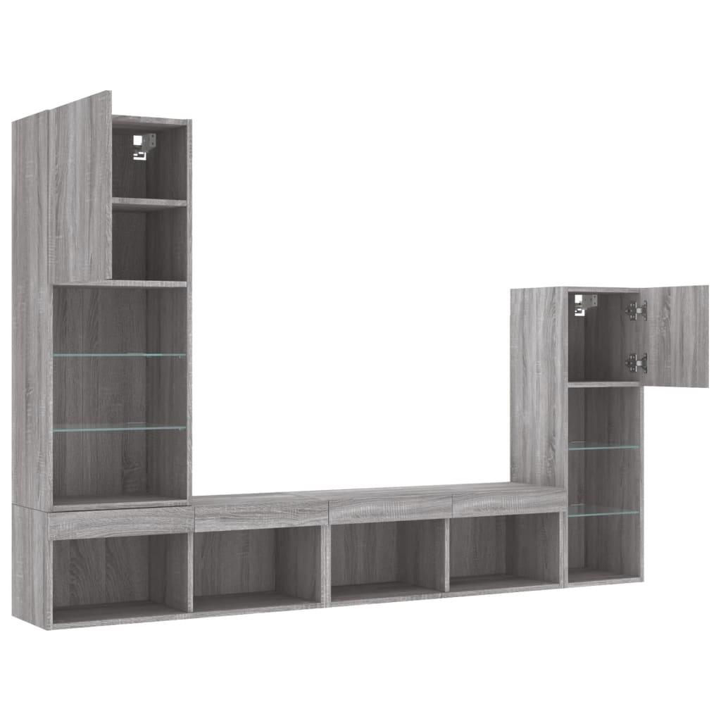 Diese TV-Wandschränke bieten eine perfekte Lösung, um zusätzlichen Stauraum in deinem Wohnraum zu schaffen und für Ordnung zu sorgen. Robustes Material: Holzwerkstoff ist ein Material von außergewöhnlicher Qualität mit glatter Oberfläche, das sich durch Festigkeit, Stabilität und Feuchtigkeitsbeständigkeit auszeichnet.RGB-LED-Leuchten: Die Wohnwand ist mit lebendigen RGB-LED-Leuchten ausgestattet. Mit verschiedenen anpassbaren Menüs kannst du die Farbe der Lichter mühelos wechseln und sie sogar auf automatische Anpassung einstellen. Diese LED-Leuchten unterstreichen nicht nur den modernen Look des TV-Wandschranks, sondern tragen auch zu seiner trendigen Optik bei.Wandmontage: Der TV-Schrank lässt sich an der Wand montieren, um zusätzlichen Stauraum zu schaffen. Auf diese Weise kannst du deine Bodenfläche maximieren und für Ordnung im Raum sorgen.Reichlich Stauraum: Das TV-Wandschrank-Set bietet reichlich Platz, um Bücher, DVDs, Zeitschriften, Medien und andere Alltagsgegenstände übersichtlich und griffbereit zu verstauen.Vielseitiges Design: Du kannst den Schrank als TV-Schrank verwenden oder ihn im Arbeitszimmer an der Wand montieren, um Utensilien oder andere Gegenstände bequem aufzubewahren. Zudem verwandelt er eine leere Wand sofort in ein Design-Element. Gut zu wissen:Schrauben und Dübel für die Innenseite der Wand sind nicht enthalten. Wir empfehlen dir, Schrauben und Dübel zu finden und zu verwenden, die speziell für deine Wände geeignet sind. Wenn du dir nicht sicher bist, kannst du dich an einen Fachmann wenden. Bitte lies und befolge jeden Schritt in der Anleitung.Das Produkt verfügt über einen USB-Anschluss, für den eine zertifizierte 5V-USB-Stromquelle erforderlich ist (nicht im Lieferumfang enthalten).