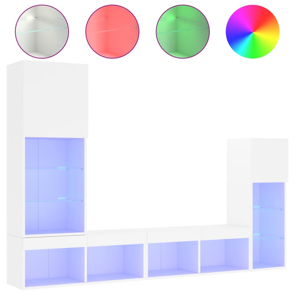 Diese TV-Wandschränke bieten eine perfekte Lösung, um zusätzlichen Stauraum in deinem Wohnraum zu schaffen und für Ordnung zu sorgen. Robustes Material: Holzwerkstoff ist ein Material von außergewöhnlicher Qualität mit glatter Oberfläche, das sich durch Festigkeit, Stabilität und Feuchtigkeitsbeständigkeit auszeichnet.RGB-LED-Leuchten: Die Wohnwand ist mit lebendigen RGB-LED-Leuchten ausgestattet. Mit verschiedenen anpassbaren Menüs kannst du die Farbe der Lichter mühelos wechseln und sie sogar auf automatische Anpassung einstellen. Diese LED-Leuchten unterstreichen nicht nur den modernen Look des TV-Wandschranks, sondern tragen auch zu seiner trendigen Optik bei.Wandmontage: Der TV-Schrank lässt sich an der Wand montieren, um zusätzlichen Stauraum zu schaffen. Auf diese Weise kannst du deine Bodenfläche maximieren und für Ordnung im Raum sorgen.Reichlich Stauraum: Das TV-Wandschrank-Set bietet reichlich Platz, um Bücher, DVDs, Zeitschriften, Medien und andere Alltagsgegenstände übersichtlich und griffbereit zu verstauen.Vielseitiges Design: Du kannst den Schrank als TV-Schrank verwenden oder ihn im Arbeitszimmer an der Wand montieren, um Utensilien oder andere Gegenstände bequem aufzubewahren. Zudem verwandelt er eine leere Wand sofort in ein Design-Element. Gut zu wissen:Schrauben und Dübel für die Innenseite der Wand sind nicht enthalten. Wir empfehlen dir, Schrauben und Dübel zu finden und zu verwenden, die speziell für deine Wände geeignet sind. Wenn du dir nicht sicher bist, kannst du dich an einen Fachmann wenden. Bitte lies und befolge jeden Schritt in der Anleitung.Das Produkt verfügt über einen USB-Anschluss, für den eine zertifizierte 5V-USB-Stromquelle erforderlich ist (nicht im Lieferumfang enthalten).