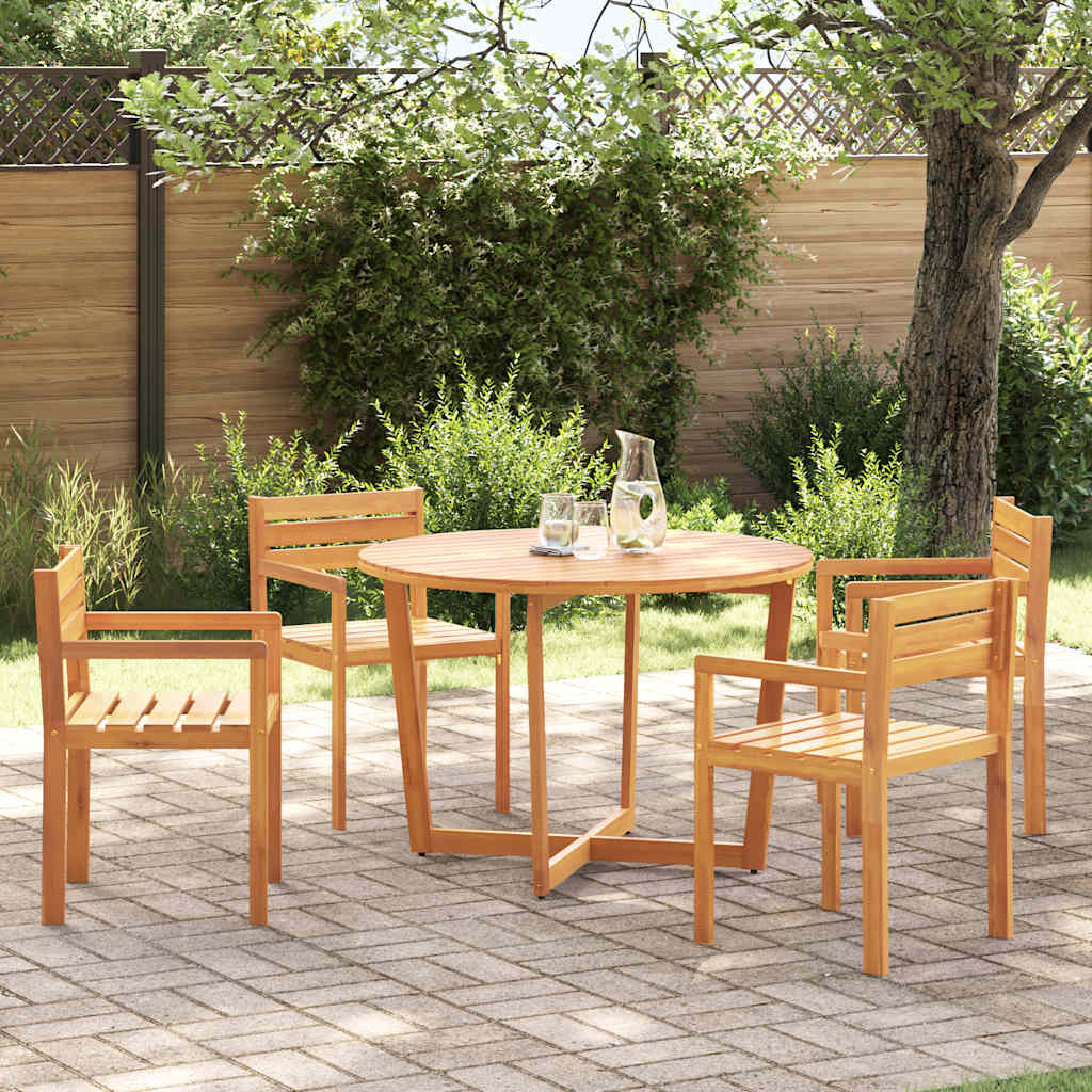 Genießen Sie ein schönes Essen im Freien mit Ihrer Familie und Freunden mit diesem Garten-Essset aus Holz! Robustes und stabiles Material: Massives Akazienholz ist bekannt für seine Stärke und Haltbarkeit, ergänzt durch einzigartige Maserungen, die seine Optik unterstreichen. Der mit einer schützenden Ölschicht versehene Tisch ist für den Außenbereich konzipiert und bietet Widerstandsfähigkeit gegen Witterungseinflüsse, während seine schöne Holzmaserung erhalten bleibt.Stabile Tischplatte: Der Gartentisch bietet hervorragenden Halt für Ihre Getränke, Snacks, Obstkörbe und Ihre Lieblingsdekorationen.Praktische Rückenlehne und Armlehne: Dieser Gartenstuhl verfügt über eine Rückenlehne und zwei Armlehnen, die dem Benutzer optimalen Halt und Komfort bieten.Gute Belüftung und Verhinderung von Wasseransammlungen: Das Lamellendesign fördert eine optimale Luftzirkulation und verhindert effektiv Wasseransammlungen, wodurch ein trockener und bequemer Sitz gewährleistet wird.Vielseitig einsetzbar: Das Garten-Essset eignet sich ideal für eine Vielzahl von Außenbereichen, darunter Terrassen, Gärten, Balkone und Veranden. Egal, ob Sie eine Tasse Kaffee genießen, entspannen oder Gäste unterhalten, es passt sich jeder Gelegenheit im Freien an und bietet sowohl Funktionalität als auch Ästhetik für Ihren Raum. Gut zu wissen:Damit Ihre Gartenmöbel schön bleiben, empfehlen wir Ihnen, sie mit einer wasserdichten Abdeckung zu schützen.
