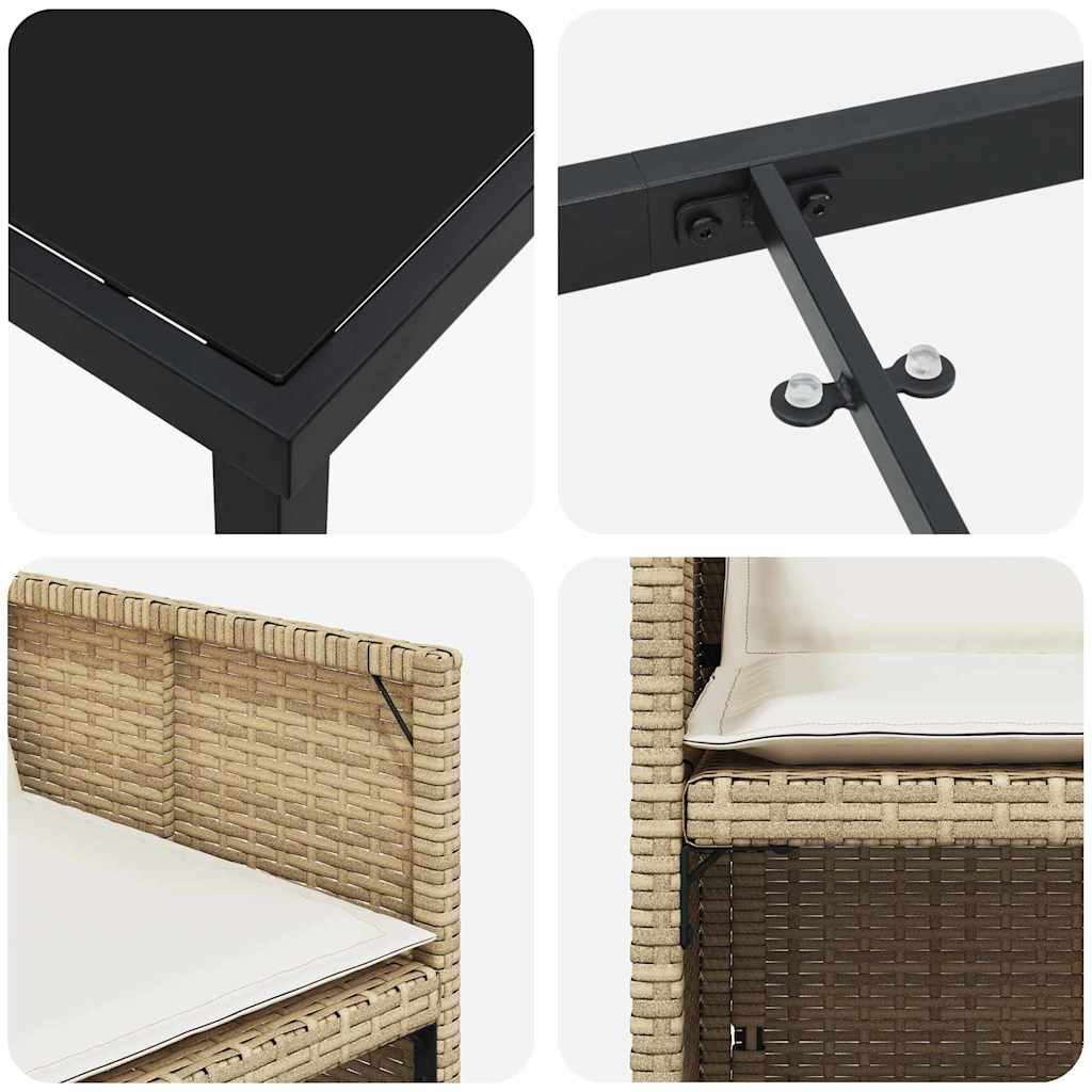 Dieses 5-teilige Garten-Set hat einen modernen Look und eine stabile Konstruktion, mit einem stabilen schwarzen Tisch und vier comfy beigen Stühlen mit wetterfesten Kissen. Es ist der perfekte Hingucker für deinen Außenbereich, ideal für gesellige Zusammenkünfte und um draußen zu essen. Robuster Stahlrahmen: Aus starkem Stahl mit einer Pulverbeschichtung, bietet hohe Stabilität und ist super für draußen. Bequeme Kissen: Jeder Stuhl hat ein weiches Kissen, das für Komfort und Stil bei langen Mahlzeiten draußen sorgt. Faltbares Design: Die Stühle lassen sich easy zusammenklappen für die Lagerung und sind leicht zu transportieren. Stylishe Tischoberfläche: Die schwarze Sicherheitsglasscheibe sieht toll aus und ist leicht zu reinigen, kratz- und fleckenresistent. Vielseitiger Einsatz: Ideal für alle Arten von Außenaufstellungen, ist dieses Esszimmer-Set perfekt für Mahlzeiten, um Gäste zu empfangen oder einfach zu relaxen mit einer Tasse draußen für ein besseres Wohngefühl im Freien.