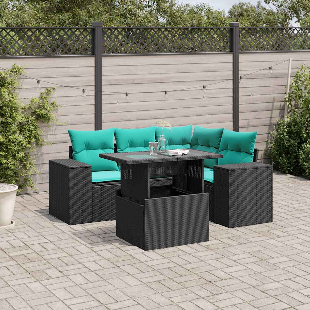 Dieses Gartensofa-Set ist die perfekte Ergänzung für Ihren Garten, Ihre Terrasse oder Ihren Innenhof und bietet einen komfortablen und einladenden Platz zum Plaudern mit Familie und Freunden oder einfach zum Entspannen und Genießen der Natur. Langlebiges Material: PE-Rattan, auch bekannt als Polyrattan, ist ein robustes, pflegeleichtes Kunststoffmaterial, das wie natürliches Rattan aussieht. Es ist leicht, einfach zu reinigen und wird aufgrund seiner Langlebigkeit und Wetterbeständigkeit häufig für Gartenmöbel verwendet.Verstellbare Tischplatte: Die Tischplatte kann angehoben werden, um den Tisch höher zu stellen, wodurch der Gartentisch von einem Couchtisch in einen Esstisch verwandelt wird. Es ist perfekt, um Gäste zu empfangen oder draußen zu essen.Bequemes Sitzerlebnis: Diese Gartenmöbel mit dick gepolsterten Kissen bieten ein bequemes Sitzerlebnis.Abnehmbarer und waschbarer Bezug: Diese Sitzkissen verfügen über abnehmbare Bezüge zum einfachen Waschen und Pflegen.Modulares Design: Dieses Gartenmöbelset hat ein modulares Design, wodurch es völlig flexibel und leicht zu bewegen ist, sodass Sie eine individuelle Gartenmöbelanordnung erstellen können. Gut zu wissen:Damit Ihre Gartenmöbel schön bleiben, empfehlen wir Ihnen, sie mit einer wasserdichten Abdeckung zu schützen.