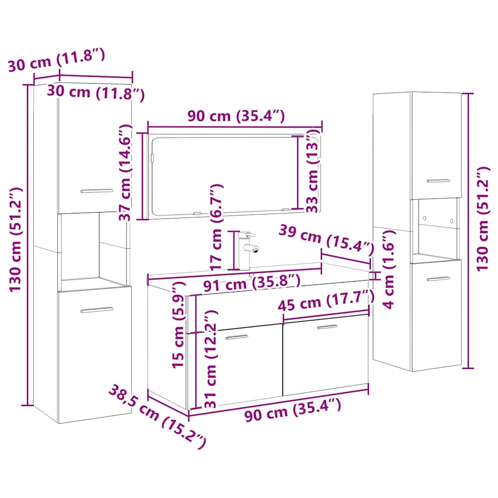 Dieses stilvolle Badmöbel-Set mit viel Stauraum ist eine ausgezeichnete Ergänzung für Ihr Badezimmer, denn es verleiht ihm ein aufgeräumtes und auffälliges Erscheinungsbild! Robustes Material: Der Unterschrank besteht aus Holzwerkstoff, einem Material von außergewöhnlicher Qualität mit glatter Oberfläche, das sich durch Festigkeit, Stabilität und Feuchtigkeitsbeständigkeit auszeichnet.Reichlich Stauraum: Das Waschbecken im Badezimmer bietet ausreichend Stauraum, um Gegenstände in Ihrem Badezimmer zu verstauen.Praktisches Design: Auf der Oberseite dieses Badschranks findet dein Waschbecken den idealen Platz.Wandmontage: Der Badezimmerschrank lässt sich an der Wand montieren, um zusätzlichen Stauraum zu schaffen. Auf diese Weise kannst du deine Stellfläche maximieren und leichter für Ordnung sorgen.Überlauffunktion: Ein Überlauf sorgt dafür, dass das Wasser abfließt, wenn das Waschbecken zu voll wird. Gut zu wissen:Schrauben und Dübel für die Wandbefestigung sind nicht enthalten. Suchen und verwenden Sie die für Ihre Wände geeigneten Schrauben und Dübel. Wenn Sie unsicher sind, suchen Sie professionelle Hilfe. Lesen und befolgen Sie jeden Schritt der Anleitung sorgfältig.Wasserhahn und Ablauf mit Überlauffunktion sind im Lieferumfang enthalten.Es handelt sich um eine Warm- und Kaltwasser-Armatur. Für Warmwasser ist der Anschluss eines Warmwasserbereiters erforderlich.