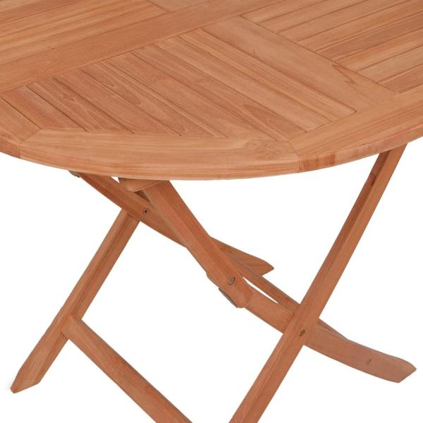 Entspanne dich und genieße einen herrlichen Nachmittagstee und Mahlzeiten mit deiner Familie und deinen Freunden an dieser klassischen Essgruppe aus Holz! Massives Teakholz: Die Essgruppe ist aus massivem Teakholz gefertigt. Massives Teakholz ist ein wunderschönes Naturmaterial. Es wurde abgelagert, getrocknet und anschließend fein geschliffen, um eine sehr glatte Optik und Haptik zu erhalten. Teakholz ist für seine außergewöhnliche Festigkeit und Witterungsbeständigkeit bekannt.Klappdesign: Die Garten-Essgruppe lässt sich bei Nichtgebrauch platzsparend zusammenklappen.Bequemes Sitzerlebnis: Dank der Rückenlehne bietet der Gartenstuhl einen ausgezeichneten Halt und optimalen Sitzkomfort.Robuste Tischplatte: Die stabile Tischplatte des Esstisches bietet den perfekten Platz für Speisen, Getränke, Vasen, Obstschalen und verschiedene Dekoartikel.Sonnenschirmloch: In der Tischplatte befindet sich ein Loch für einen Sonnenschirm, sodass du leicht einen Sonnenschirm anbringen kannst, um einen schattigen Platz zu schaffen.Latten-Design: Mit seinem Latten-Design weist der Gartenstuhl eine schlichte und zeitlose Optik auf. Hinweis:Damit deine Gartenmöbel lange schön bleiben, empfehlen wir dir, sie mit einer wasserdichten Hülle zu schützen.