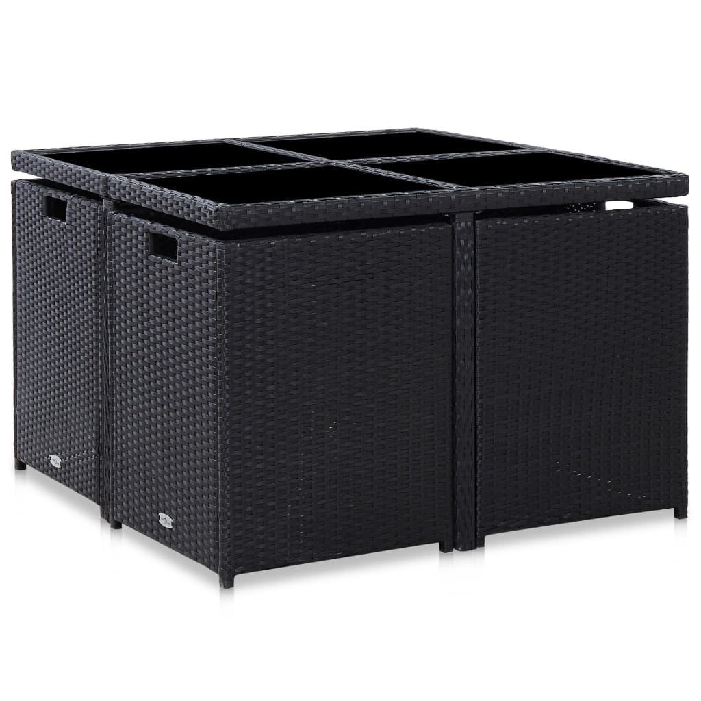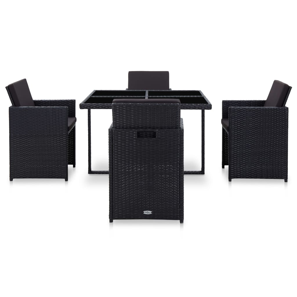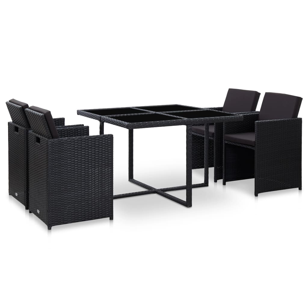Unsere Garten-Essgruppe aus Poly Rattan mit elegantem Design ist die ideale Wahl für eine Mahlzeit im Freien oder zum Entspannen im Garten oder auf der Terrasse! Das Gartenmöbel-Set ist mit einem stabilen, pulverbeschichteten Stahlrahmen ausgestattet, der es sehr stabil und langlebig macht. Dank des wasserabweisenden PE-Rattans ist die Essgruppe leicht zu reinigen, strapazierfähig und für den täglichen Außeneinsatz geeignet. Die Glasplatte lässt sich auch leicht mit einem feuchten Tuch reinigen. Die dicken, weichen, schaumstoffgefüllten Sitz- und Rückenkissen sind sehr bequem. Die pflegeleichten Kissenbezüge aus Polyester können leicht abgenommen und gewaschen werden. Dieses gesamte Gartenset ist leicht zu montieren. Die Lieferung beinhaltet 1 Tisch, 4 Stühle und 8 Polster. Hinweis: Wir empfehlen, das Set bei Regen, Schnee und Frost abzudecken.